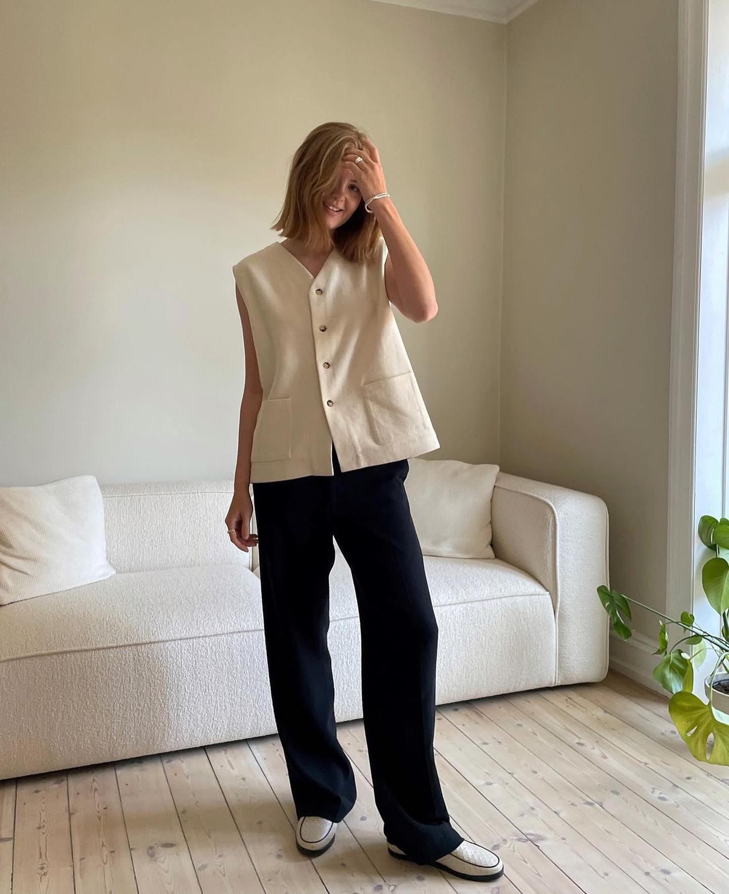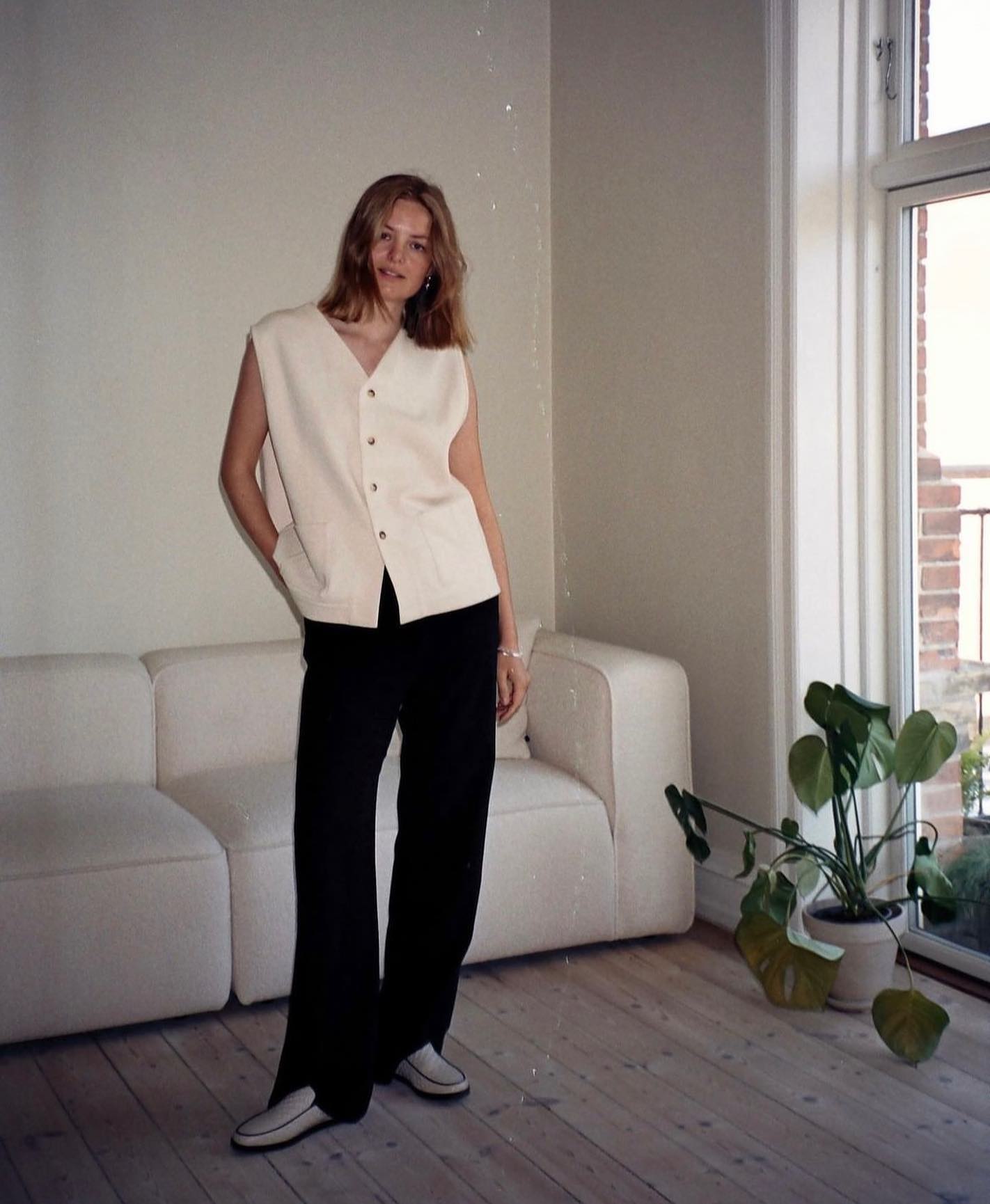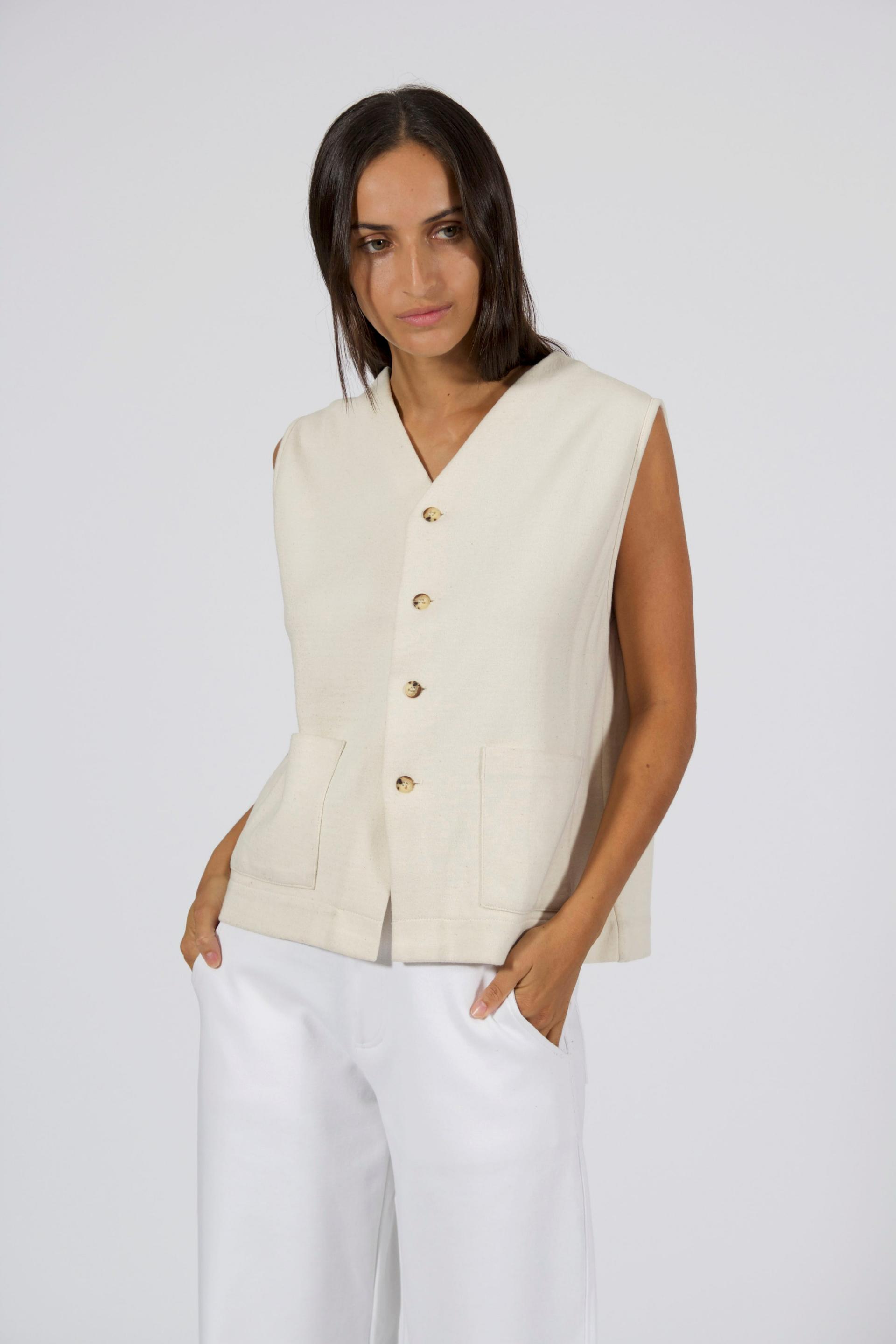 남성 복식에서 영감받은 클래식한 실루엣의 베스트로