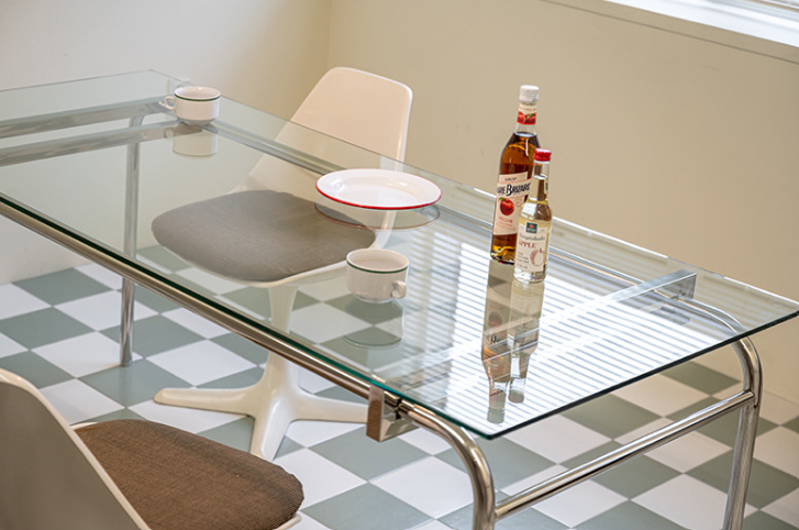 테이블 유리의 모든 모서리는 안전하게 마감되어