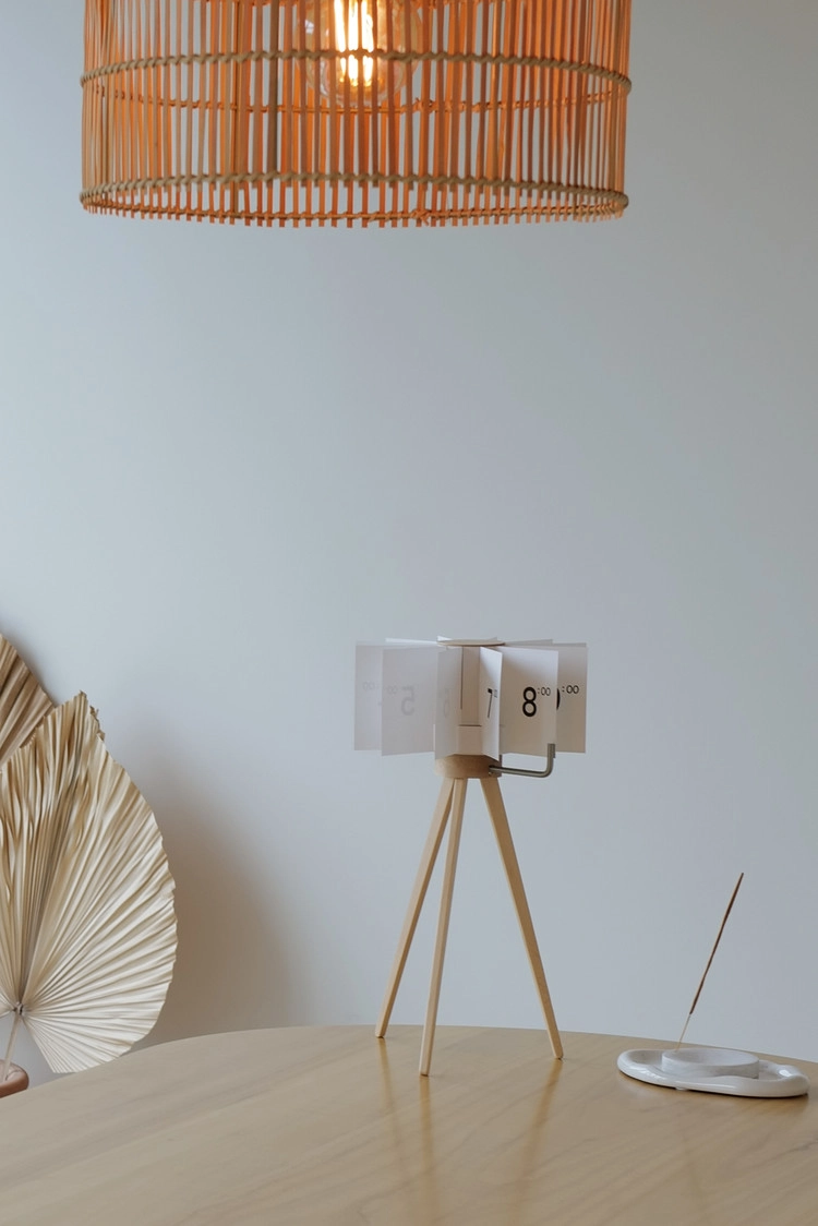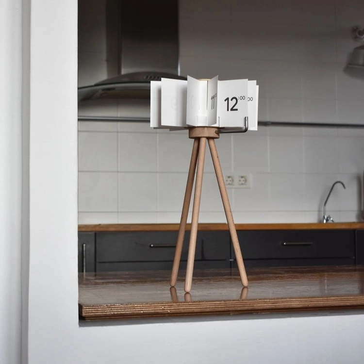 The clock stands out for being made of local wood and using high-quality paper sheets to indicate the hours of the day.