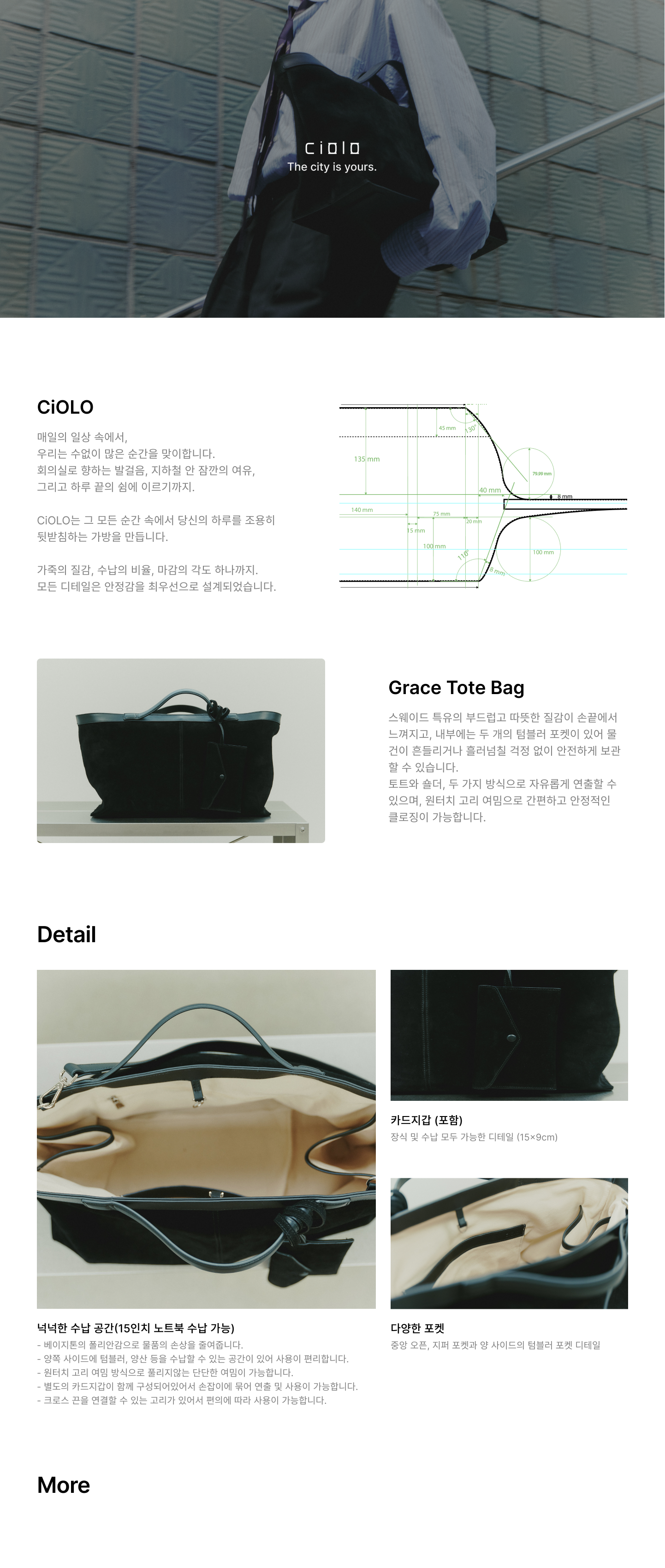 – 하단 가죽 덧댐 디테일로 오염 방지