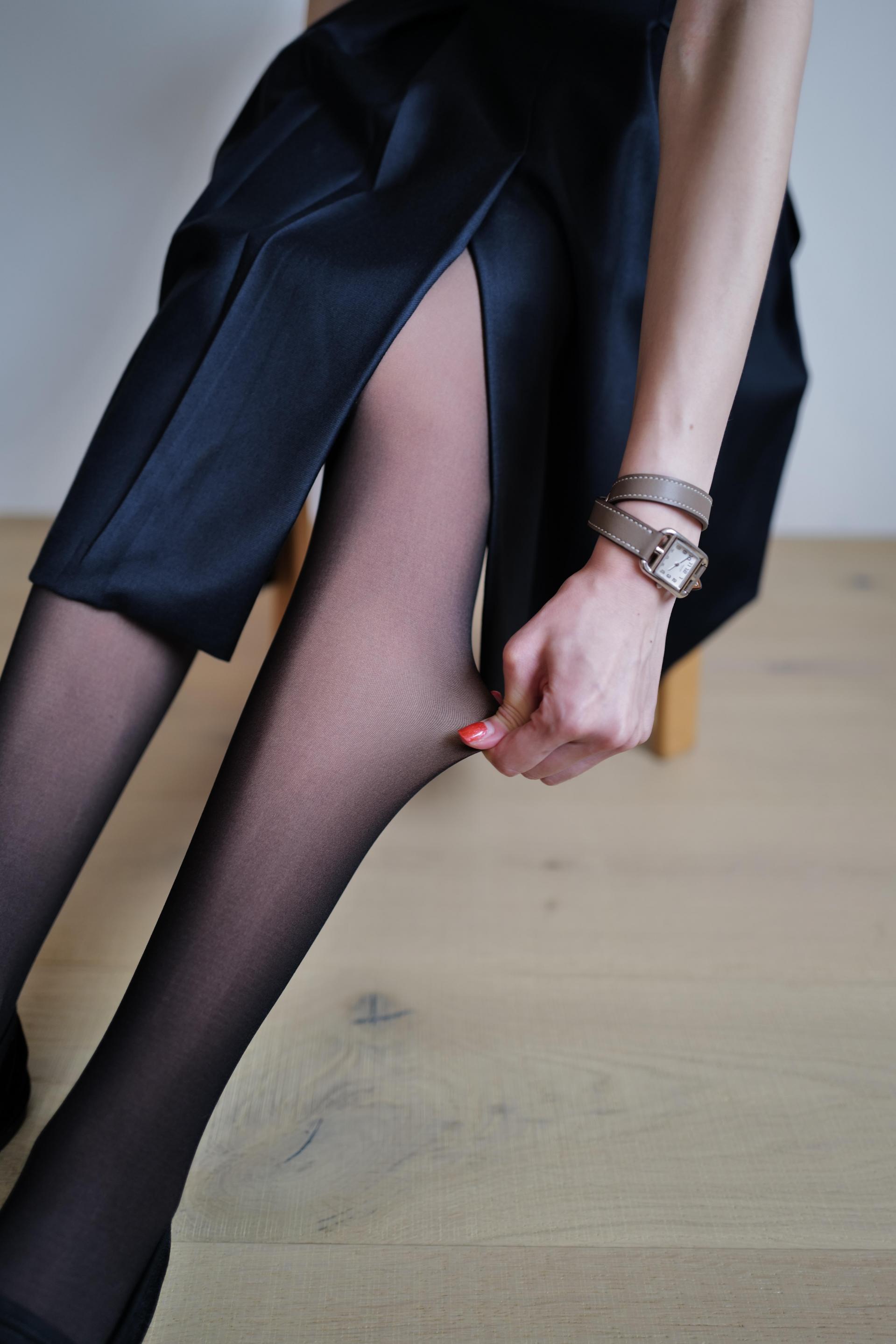 겉면은 블랙, 안에는 스킨 컬러로 제작된 양면 스타킹이 제작되었어요.
