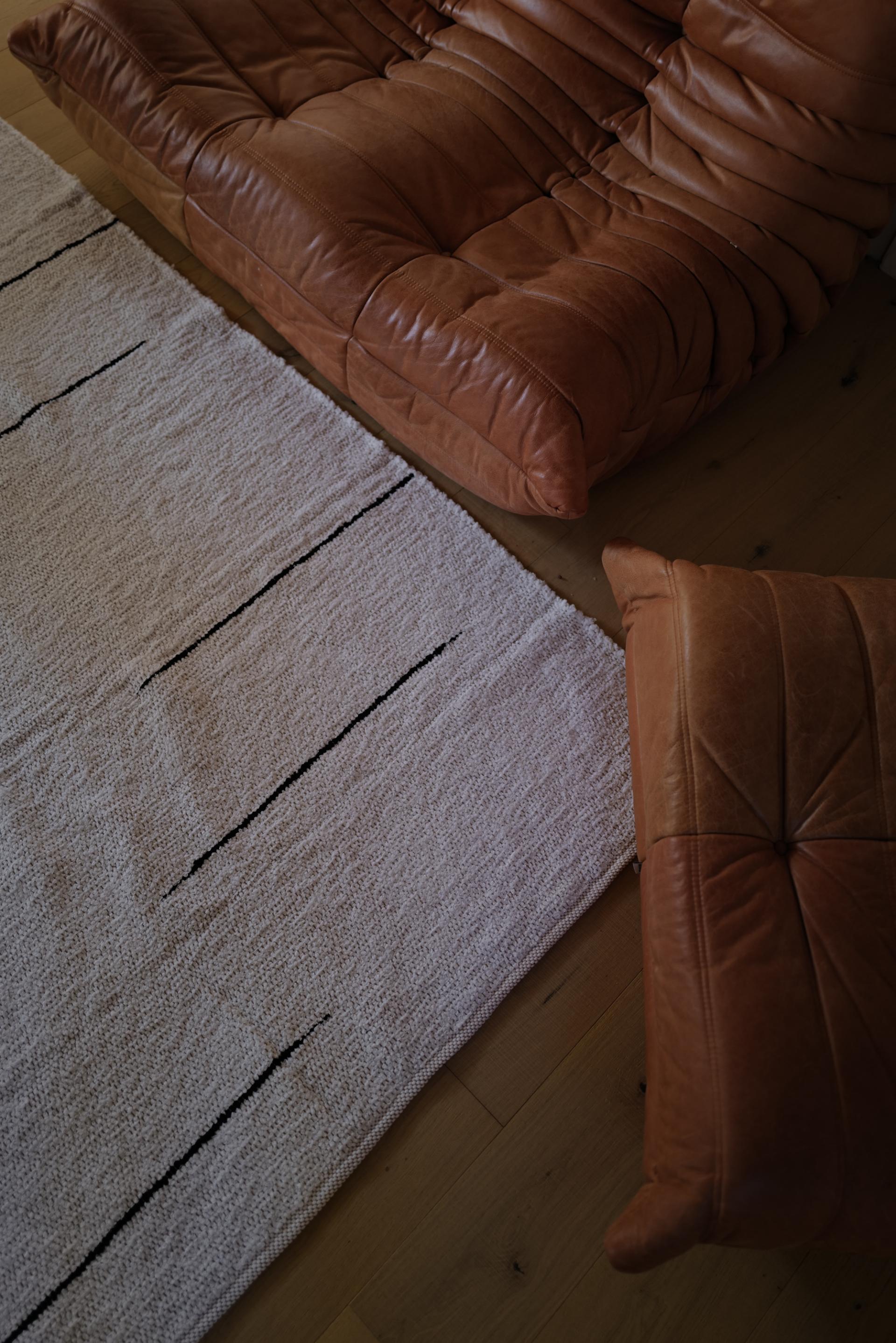 러프하고 내츄럴한 텍스쳐가 매력적인 이 러그는 면 100% 실로 직조되어