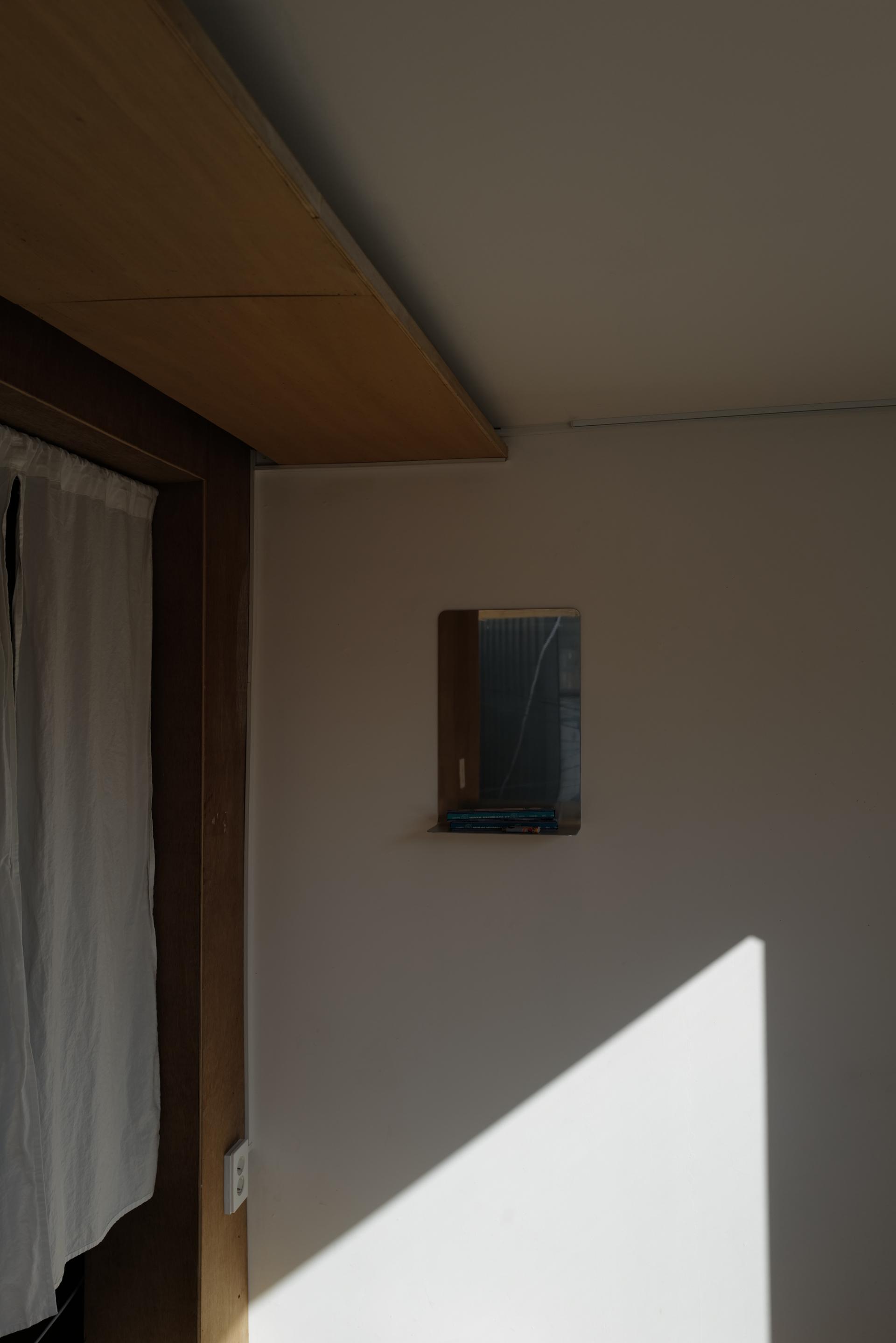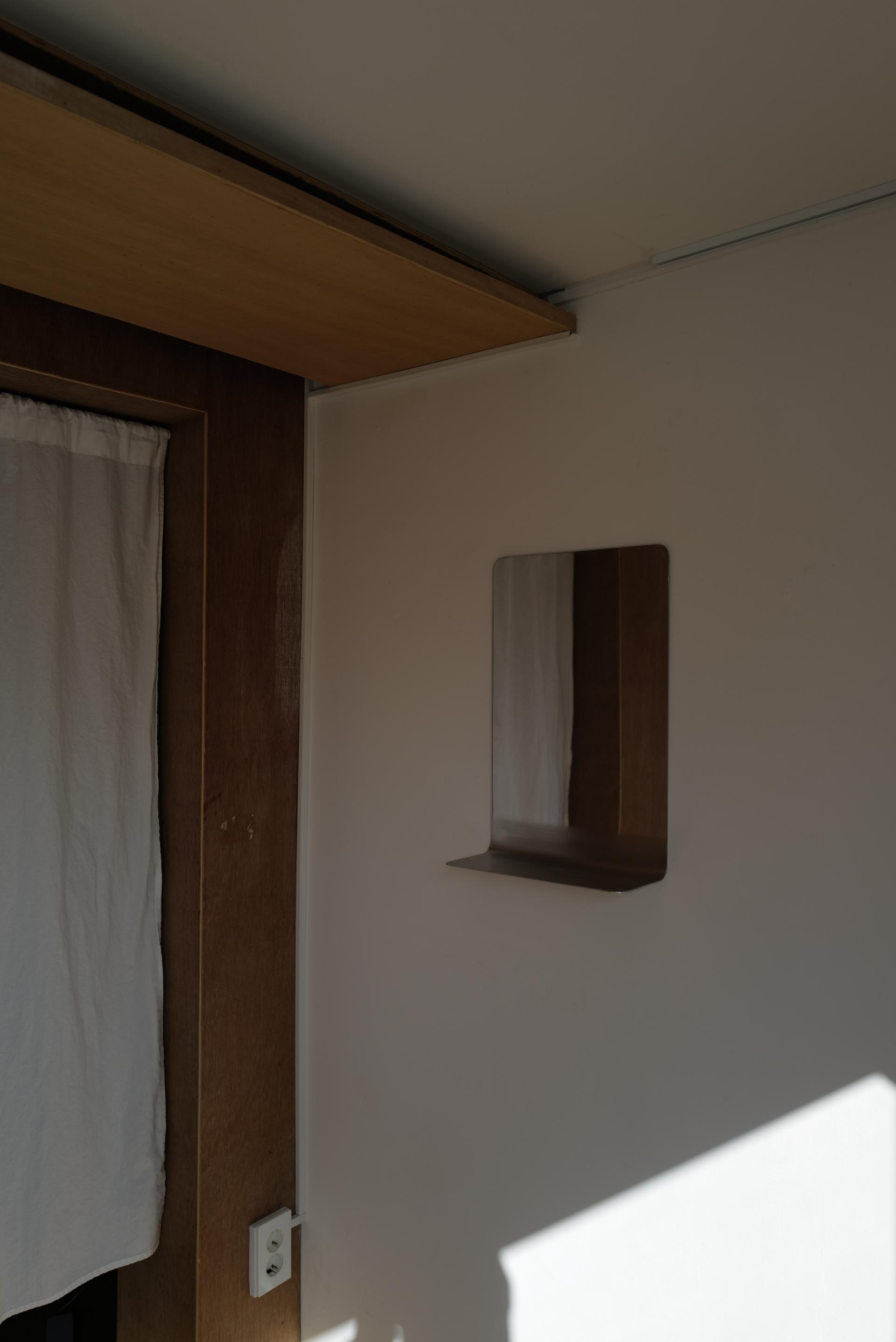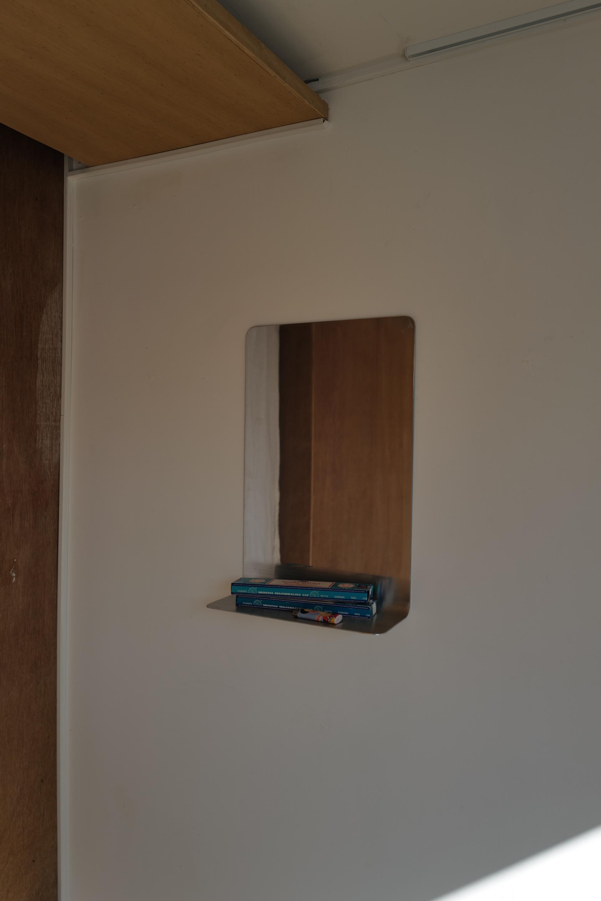 거울 부분의 알루미늄은 광택 처리가 되어 있으며, 하단부 수납 부분은 광택이 나지 않게 투톤 처리되어 있습니다.