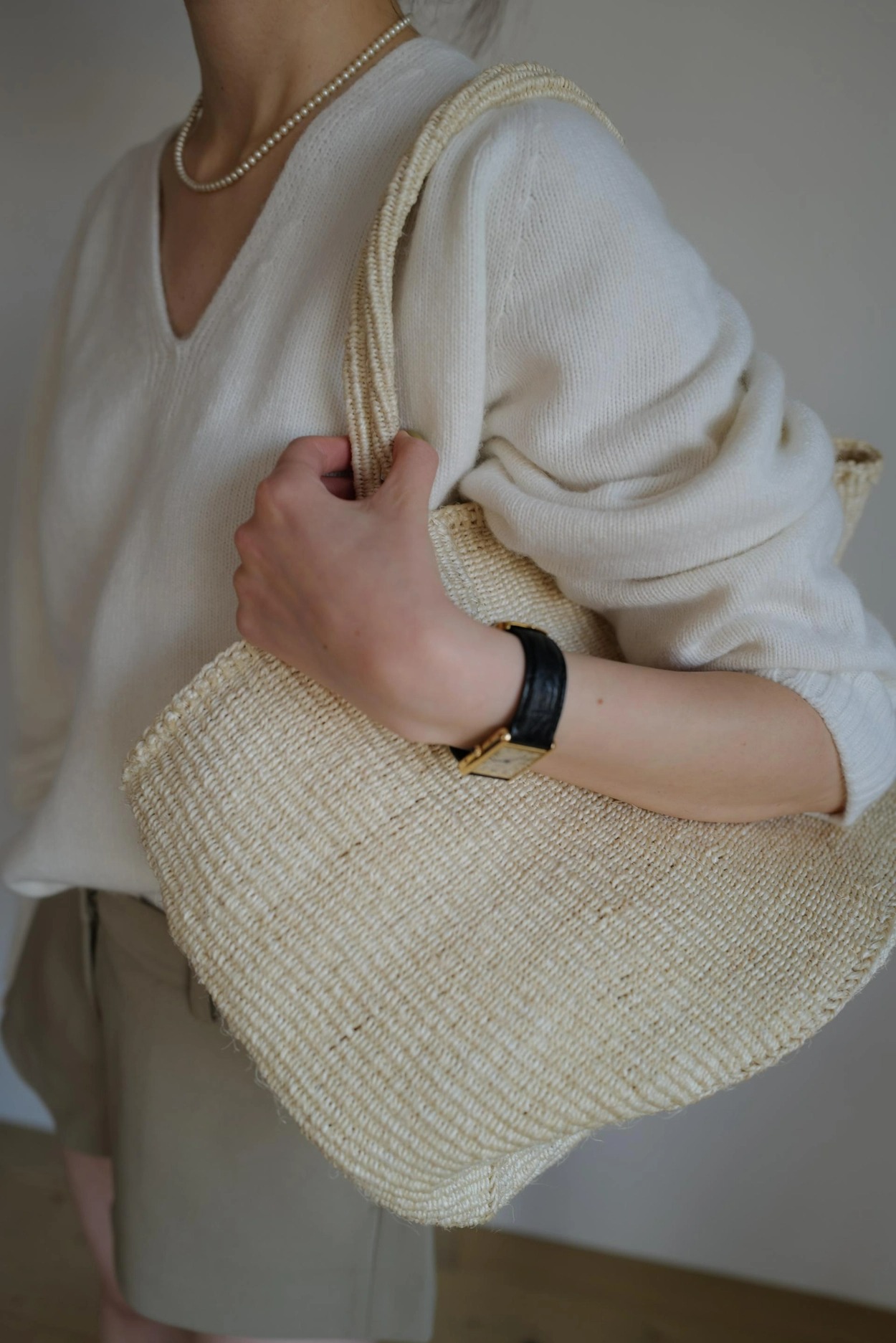 주로 여름에 많이 드는 라피아, 대나무 가방 보다