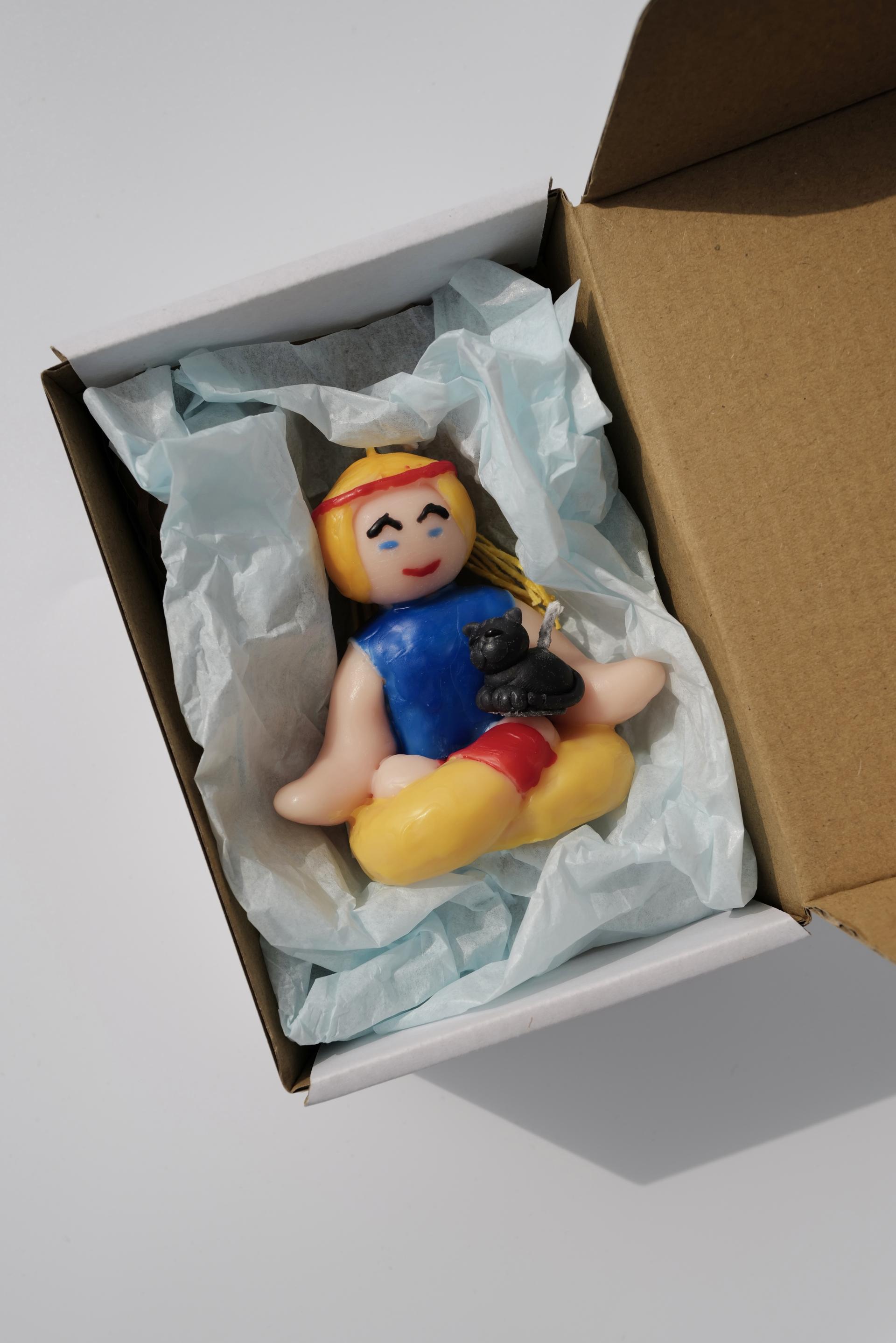 컬러풀한 촛농이 자연스럽게 흩뿌려져있는 박스 패키지 위에