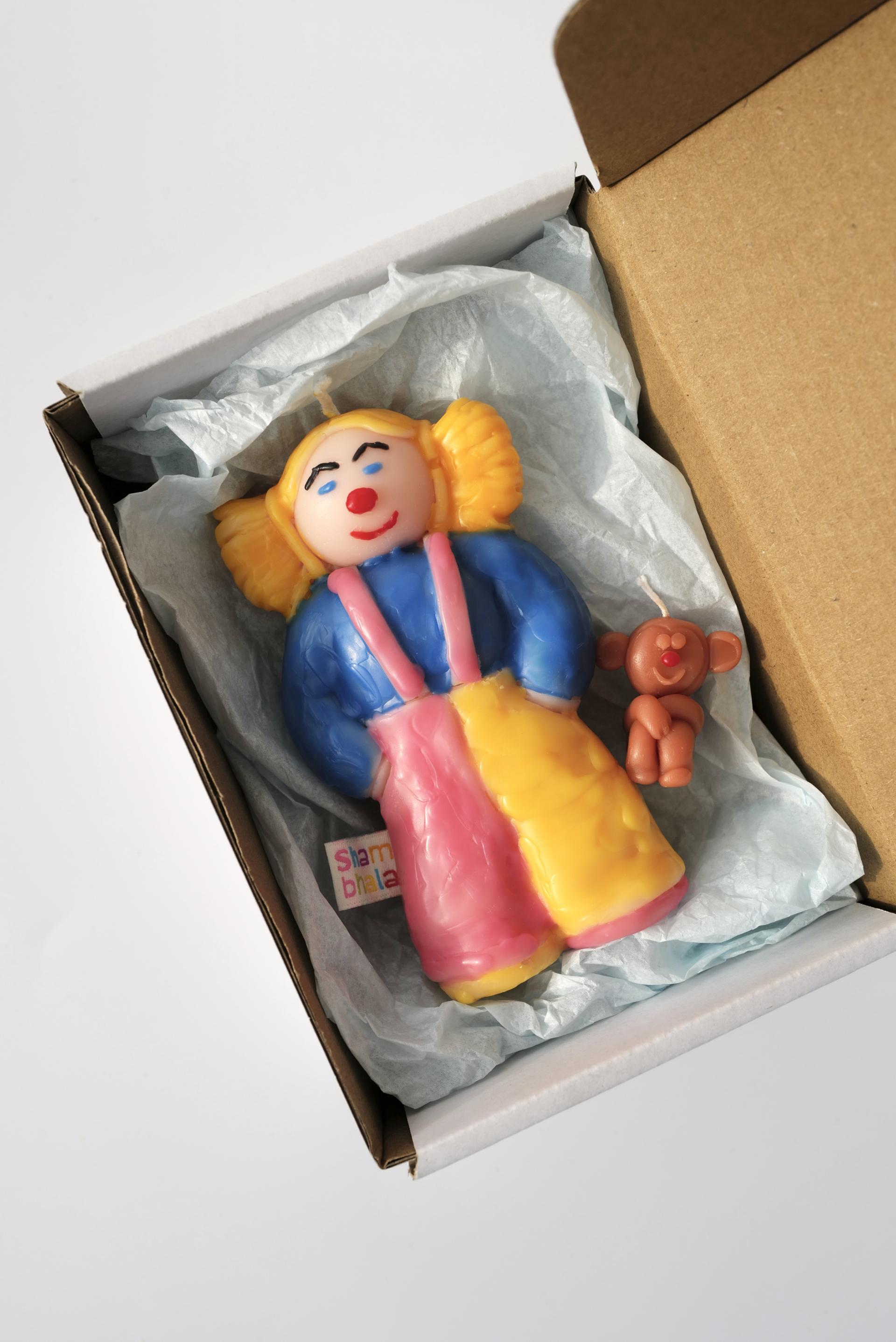 컬러풀한 촛농이 자연스럽게 흩뿌려져있는 박스 패키지 위에