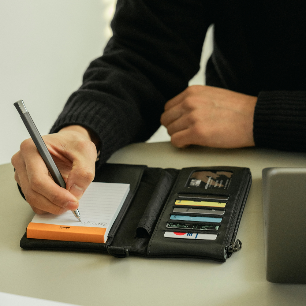 카드지갑만 들고 다니는 비즈니스맨이 간단한 미팅과 외출 시