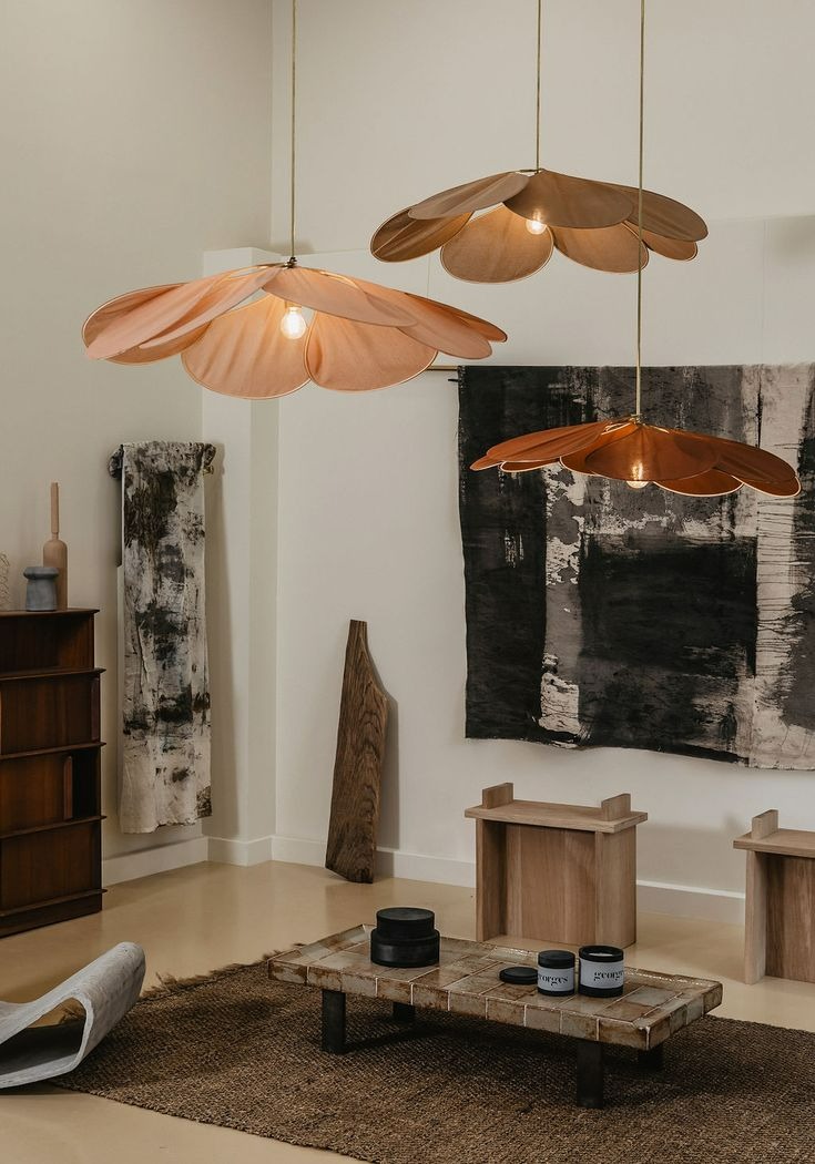 패브릭, 황동, 등나무의 조화로 탄생한 Georges의 상징적인 펜던트 조명, l'Originelle.