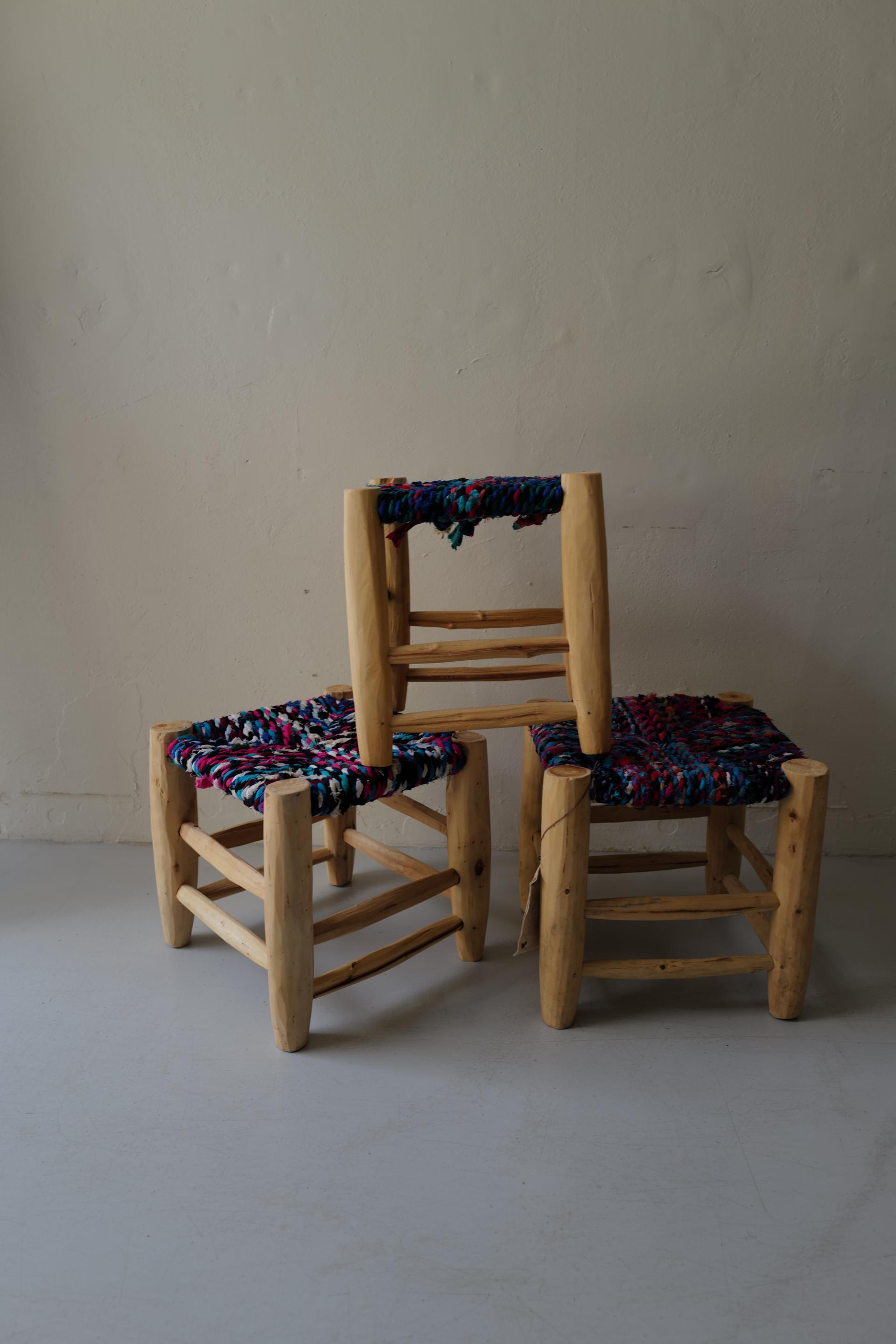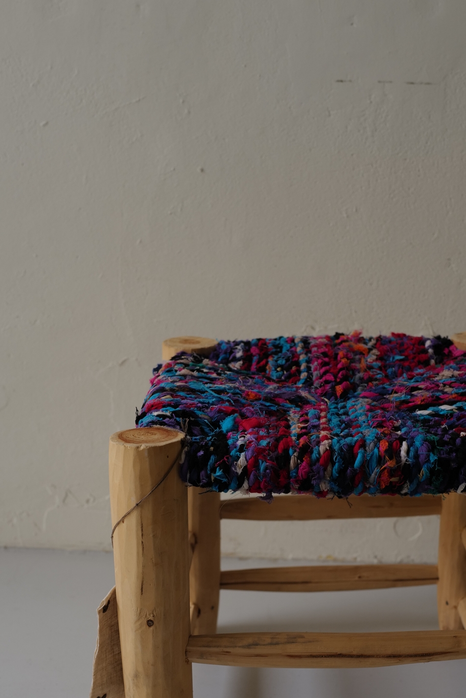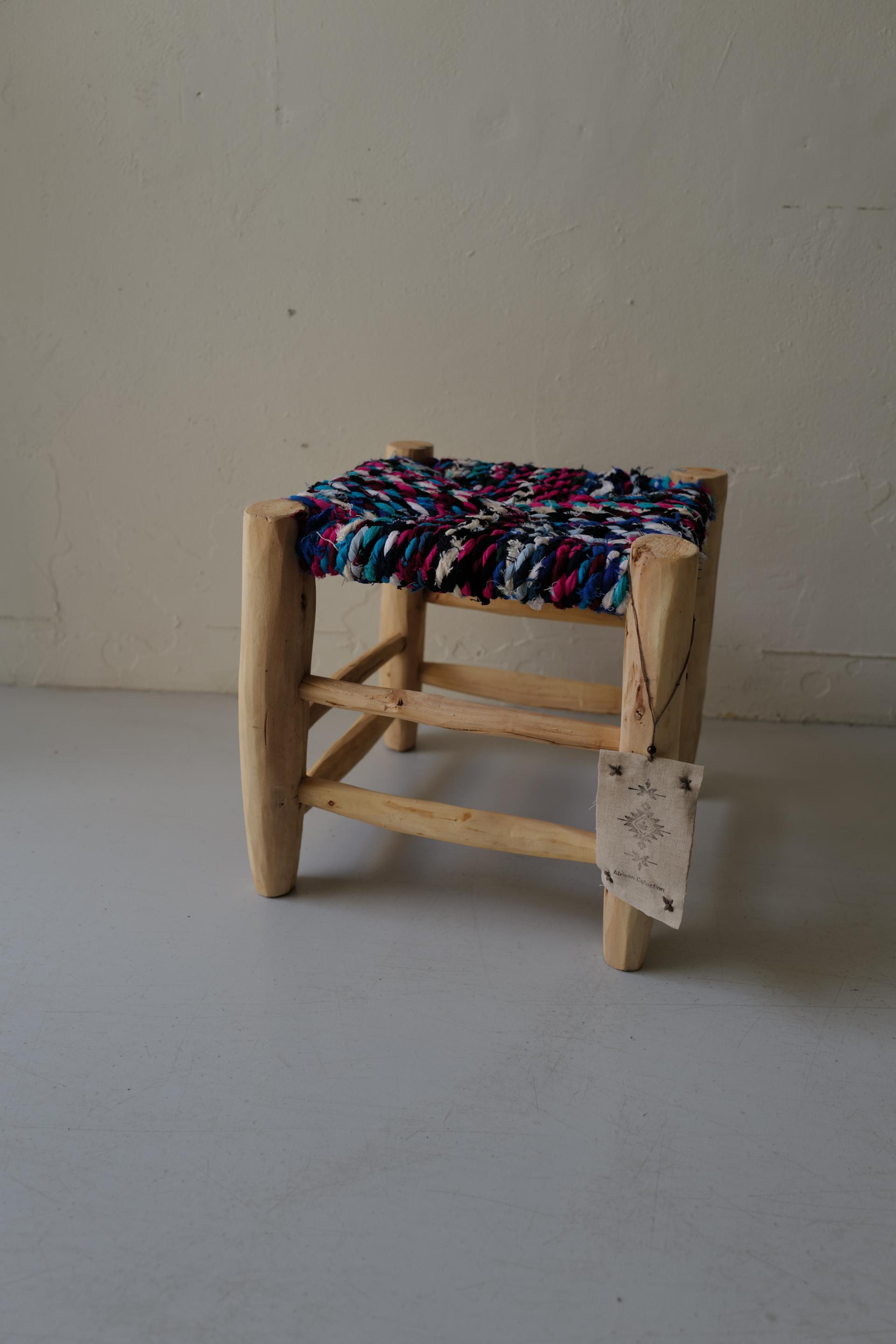 모로코의 세련된 패브릭과 오렌지 나무로 만든 스툴입니다.
