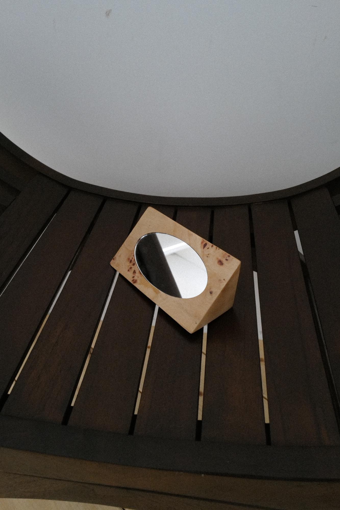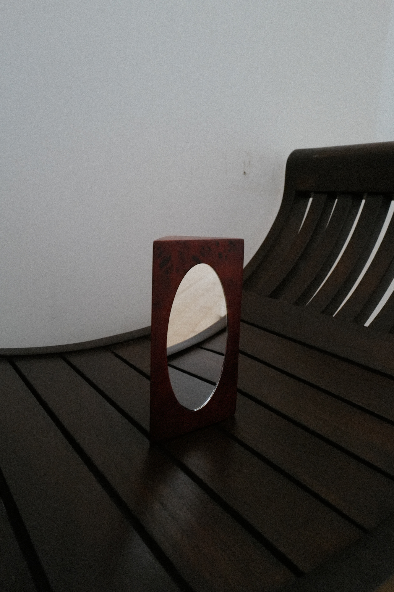 벌우드로 제작한 한 손으로 들수 있는 컴팩트한 사이즈의 거울 입니다.