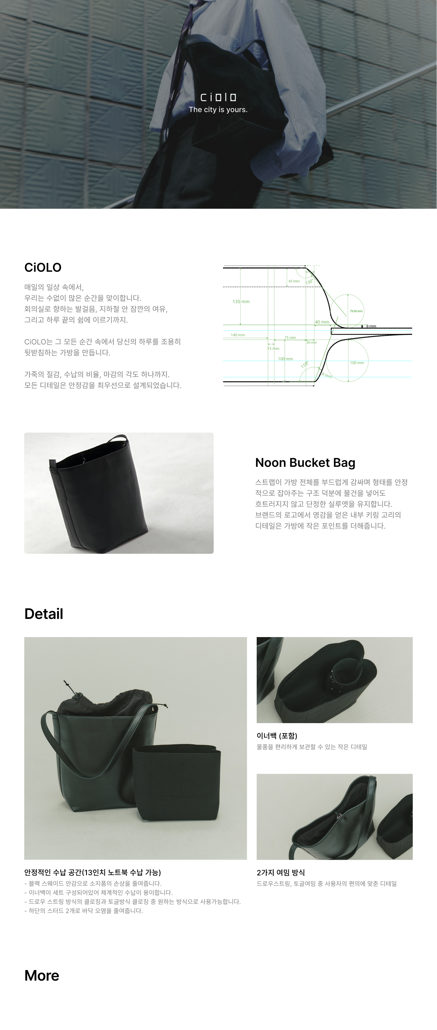 그 ‘적당함’의 미학을 담은 데일리 버킷백이에요.