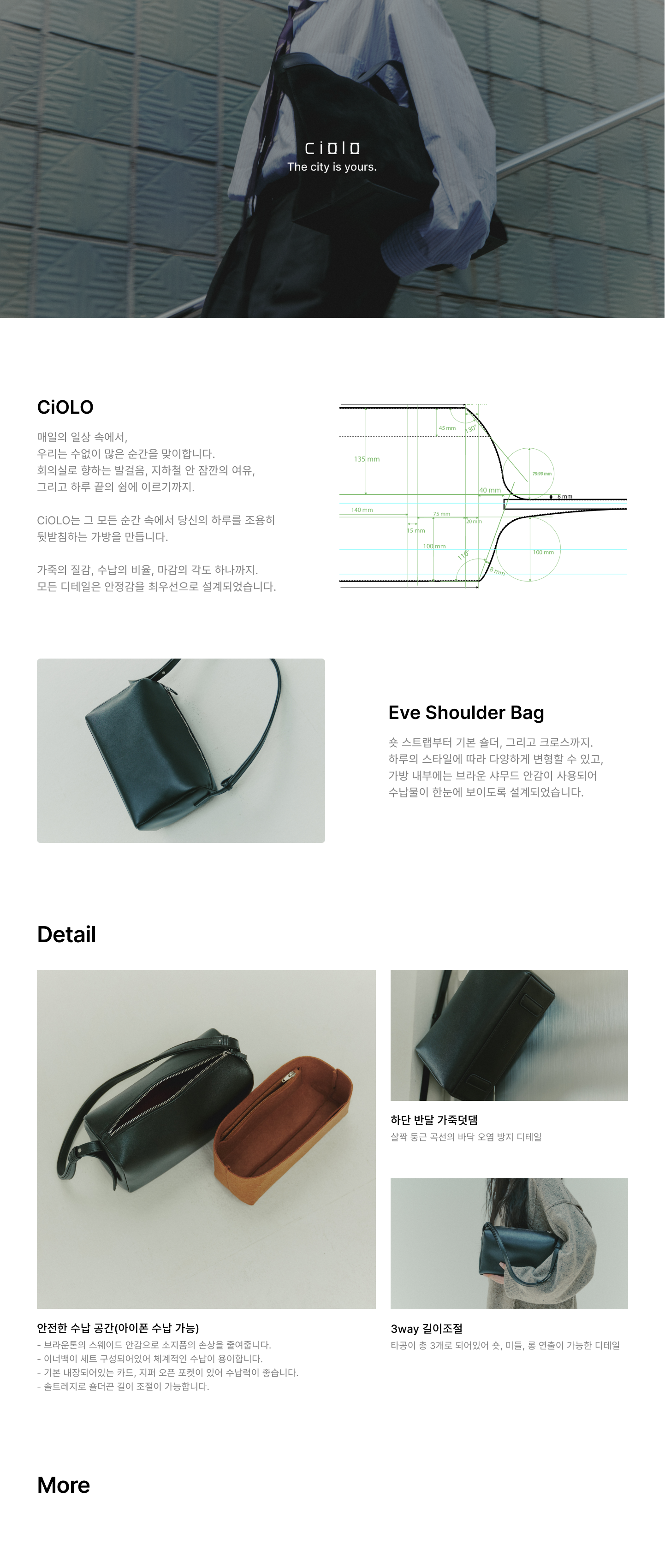 하루의 변화에 자연스럽게 대응하는 3way 숄더백이에요.