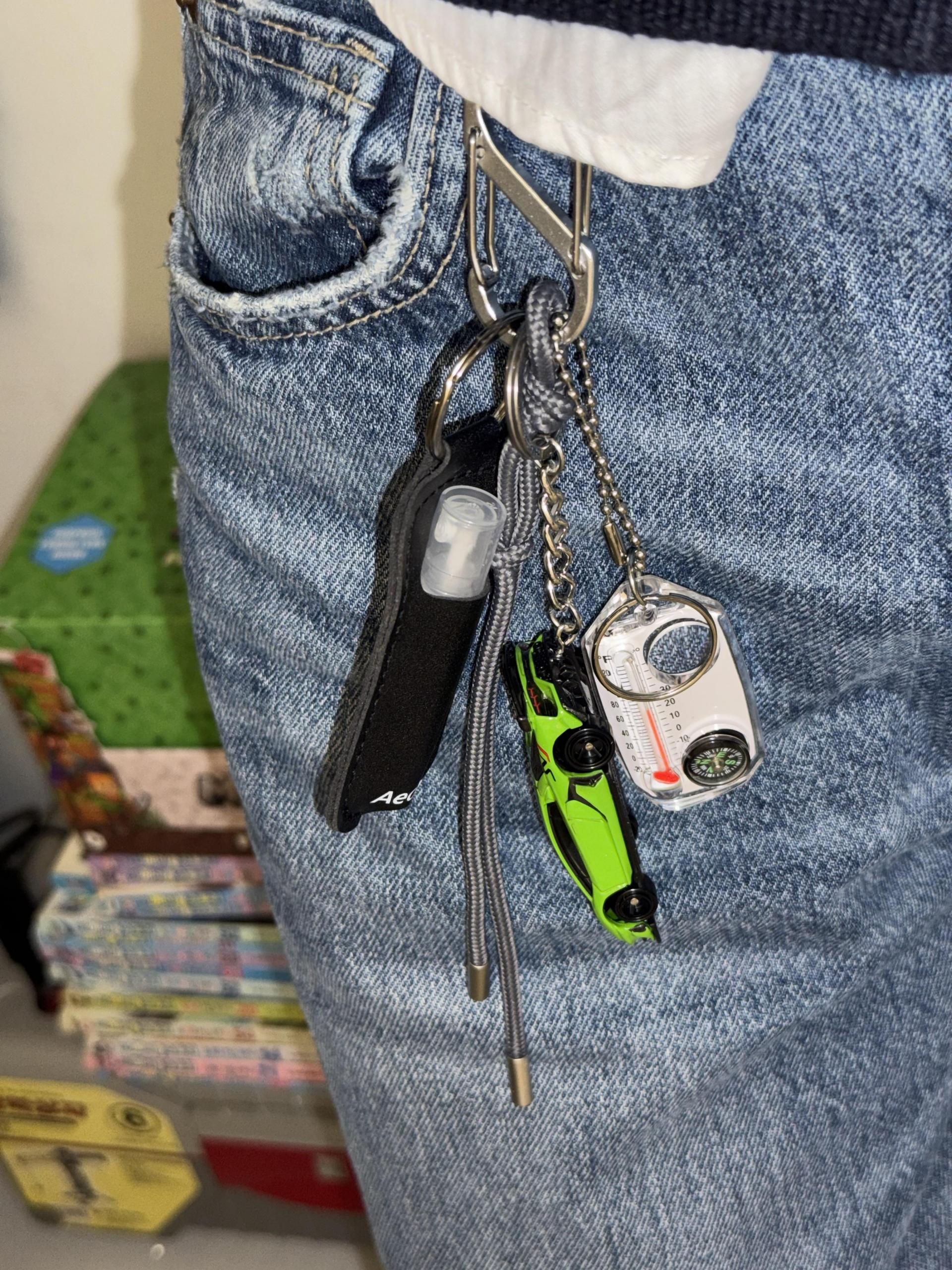 온도계,나침반,돋보기 3가지 기능이 포함된 키링은