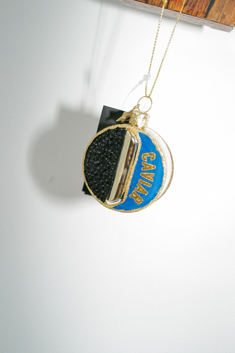 - Ornament glass Rose black and blue caviar tin can -