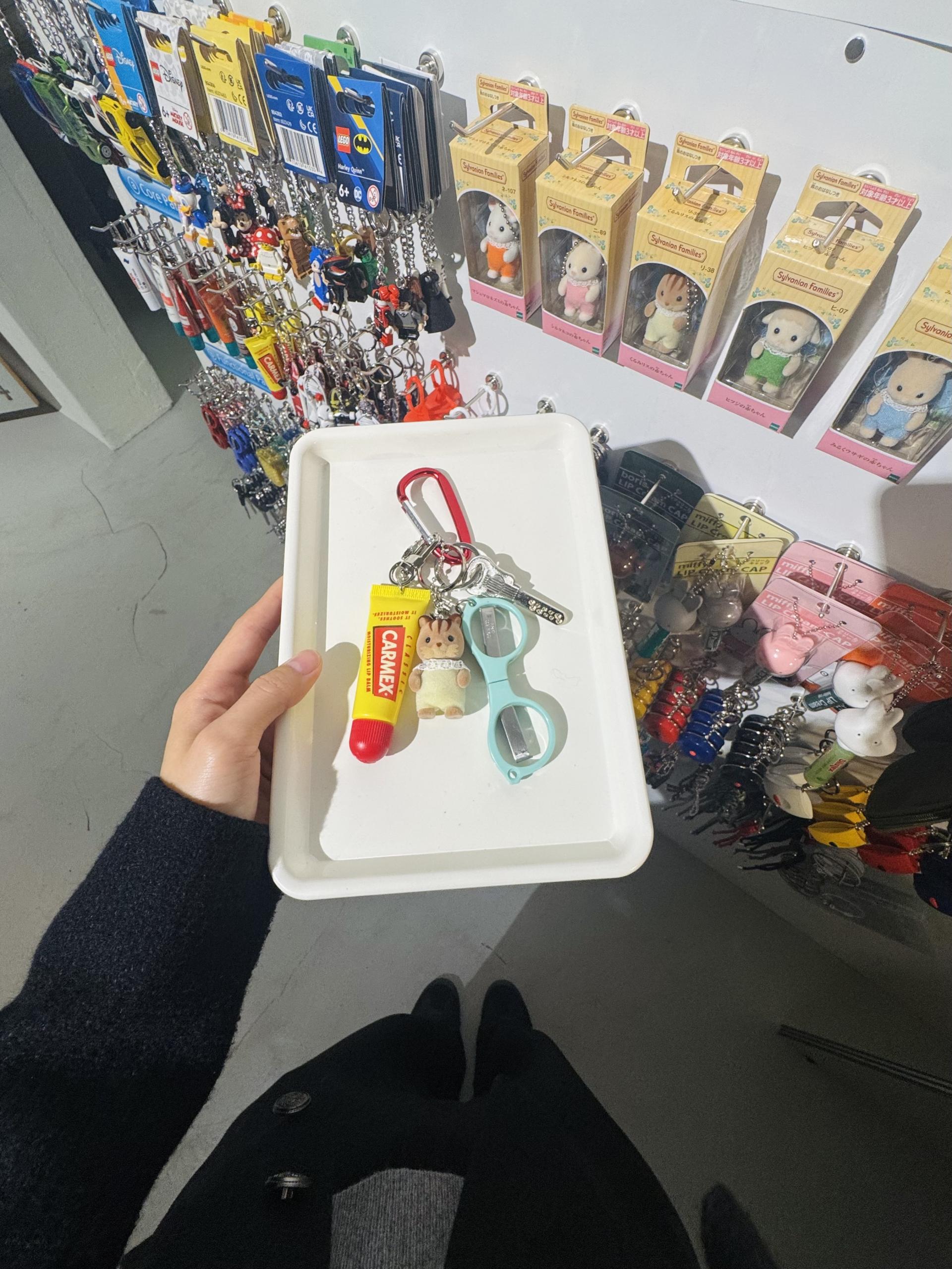 그의 수집품 중, 자신의 취향에 따라 부품을 선택하여 나만의 키링을 완성해보세요.