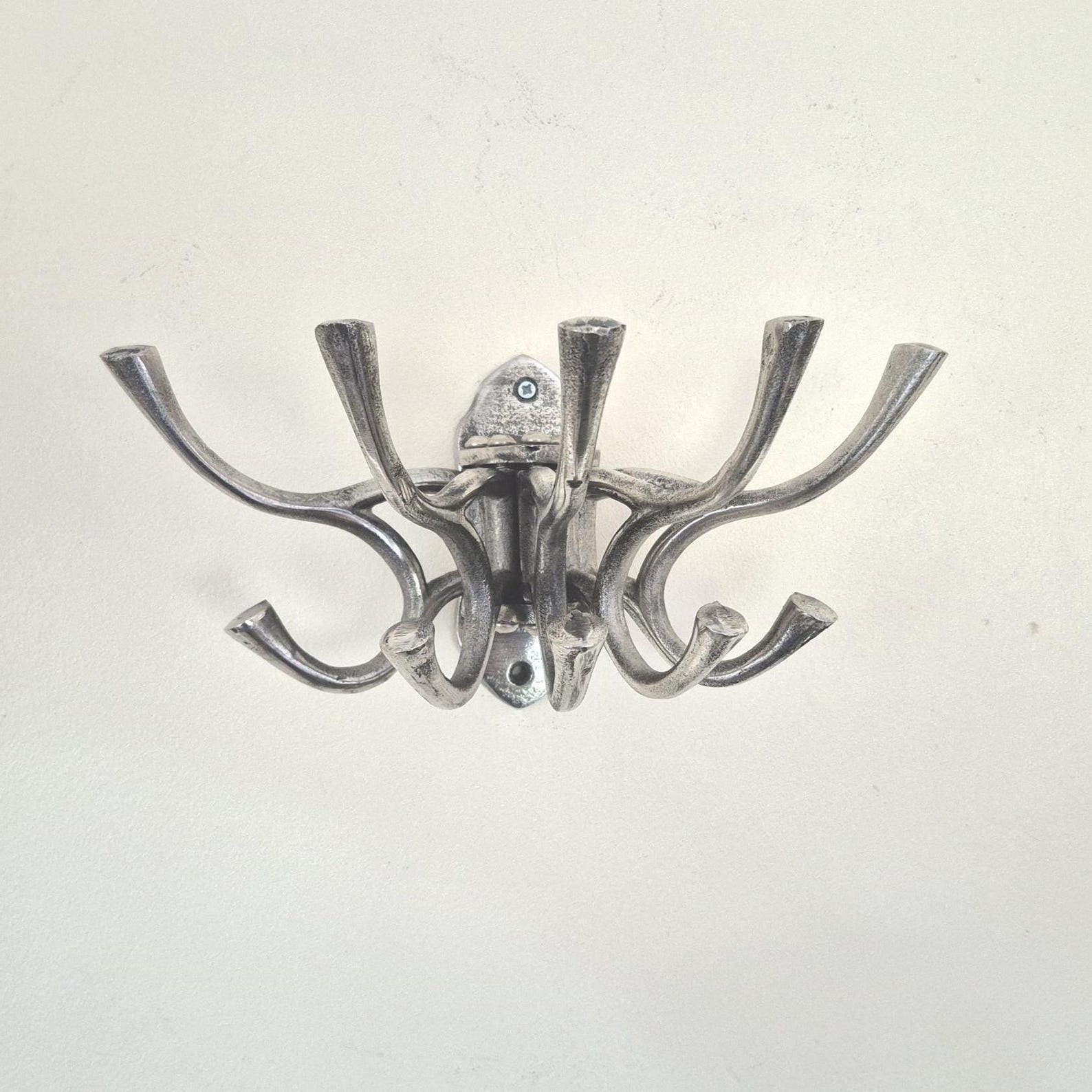 2000년대 이전에 제작된 러스틱한 무드의 빈티지 금속 코트 훅입니다.