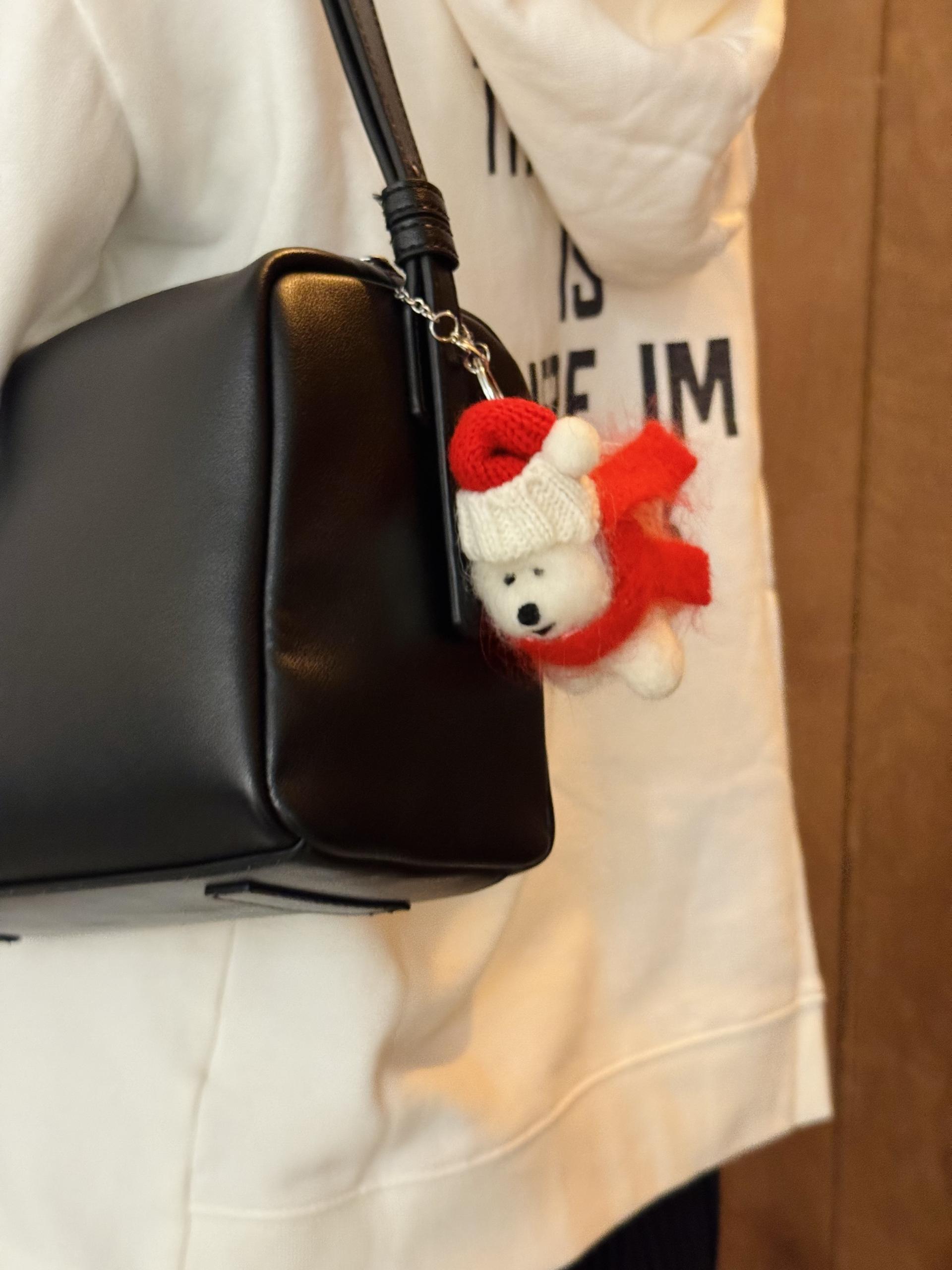 포근한 니트 스웨터와 연말 감성 가득한 레드 목도리,