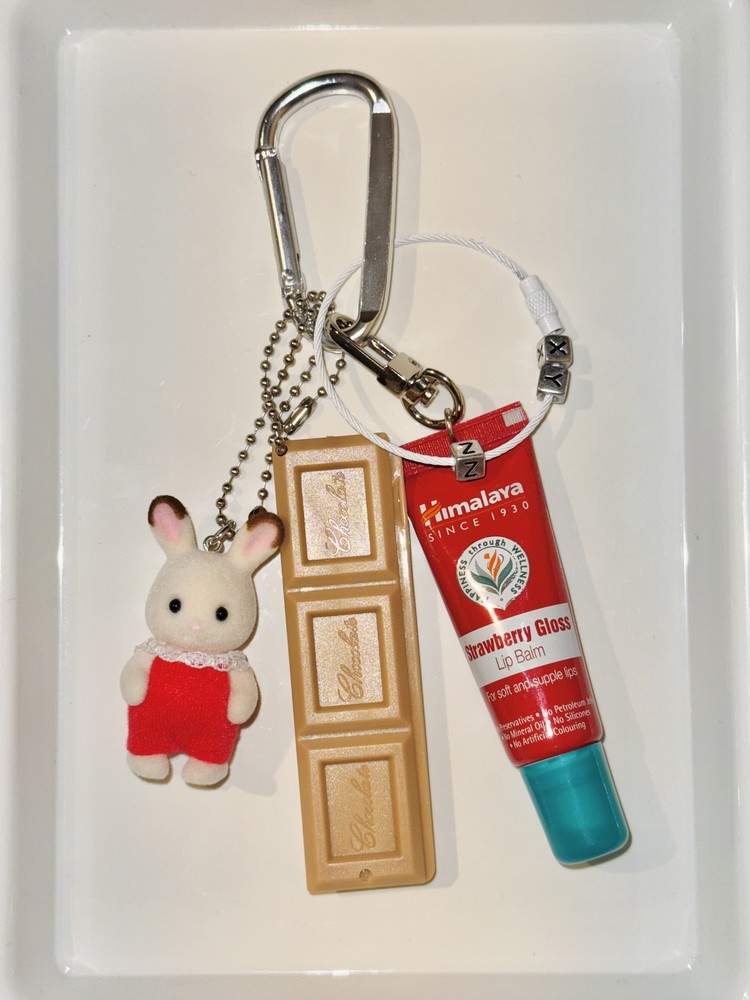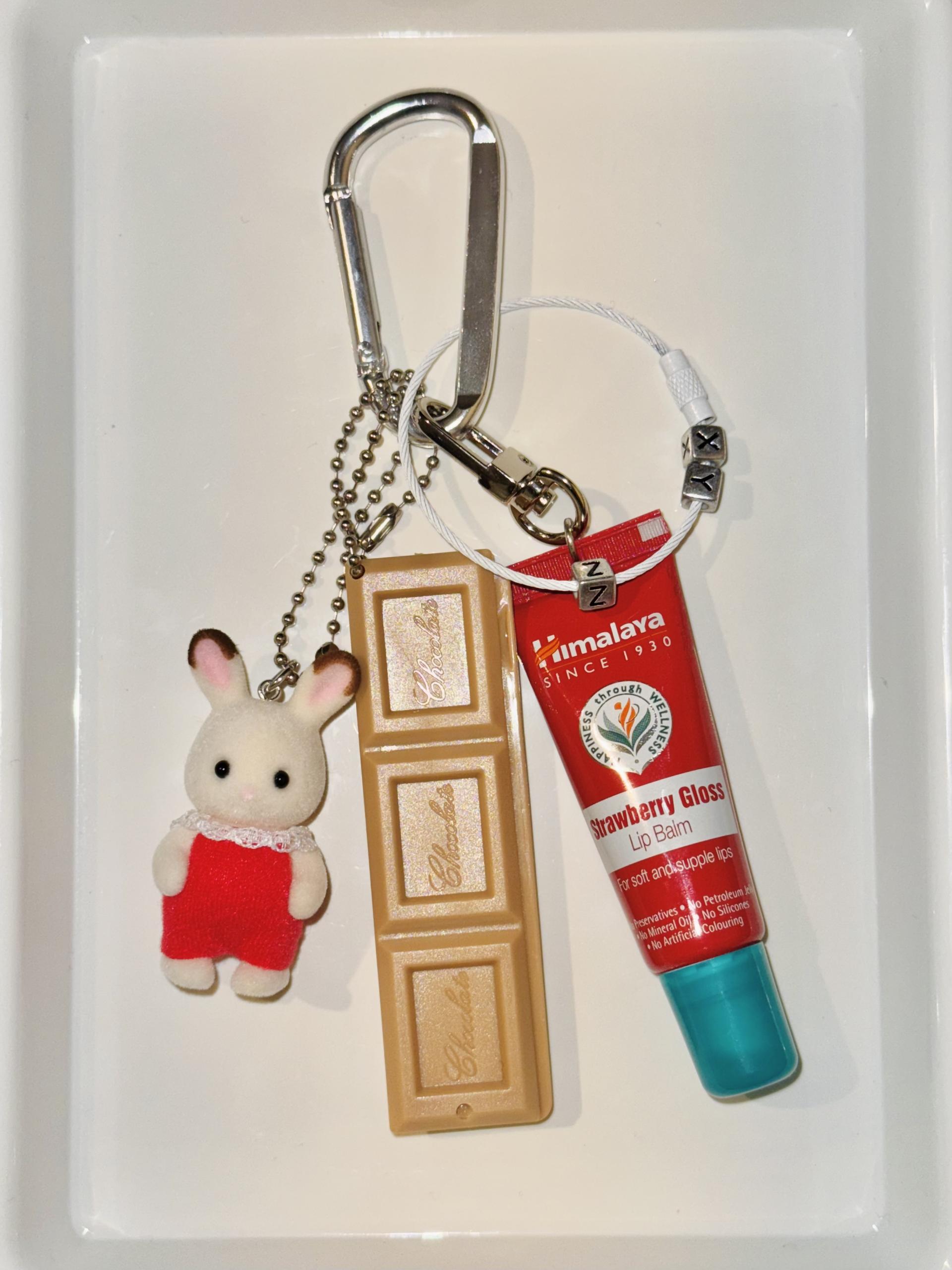 초콜릿 토끼 피겨를 메인으로 구성한 키체인입니다.