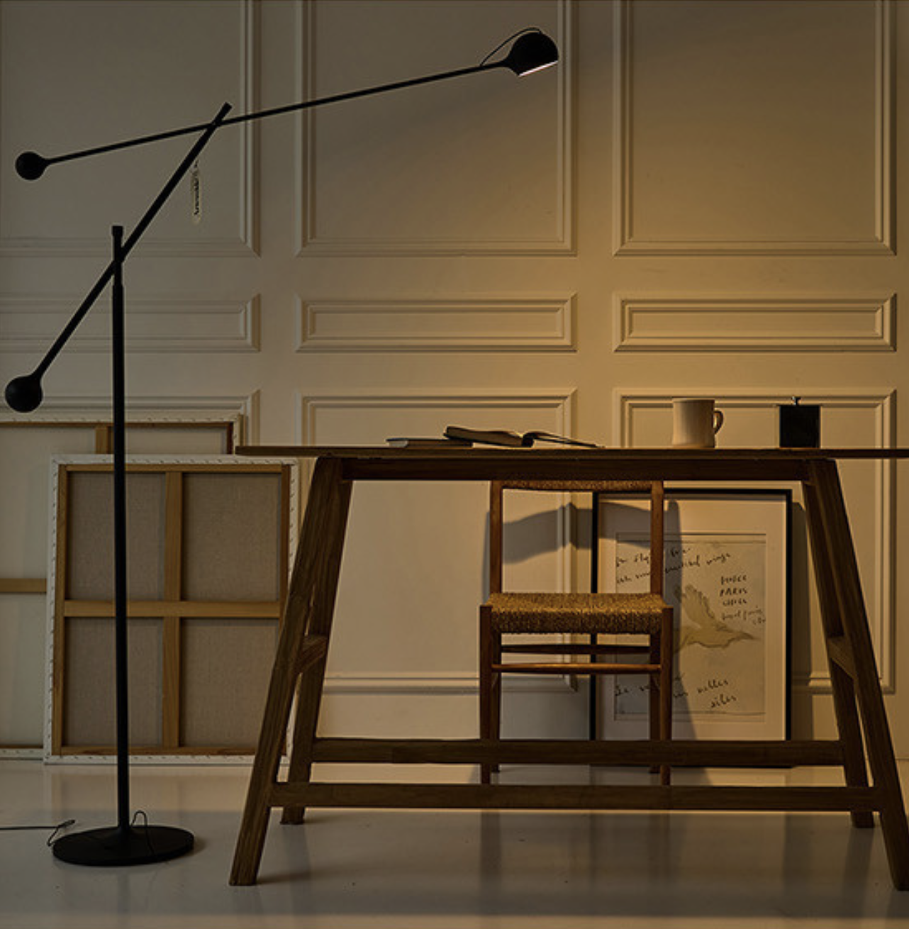 Artemide가 선보인 컨템포러리 플로어 조명으로, 산업적 구조미와 정밀한 움직임을 결합한 디자인이 특징입니다.
