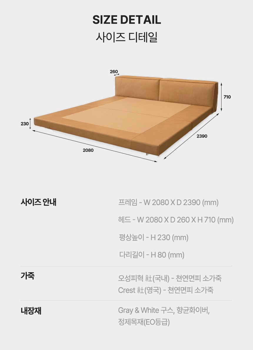 보다 편안하고 안정적인 공간으로 완성해주는 침대 프레임입니다.