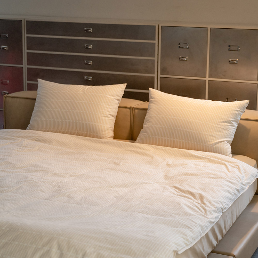 골조 외부를 구스 100% 구스 패드로 둘러싸 오랫동안 사용해도 변함없이 깨끗한 프레임입니다..