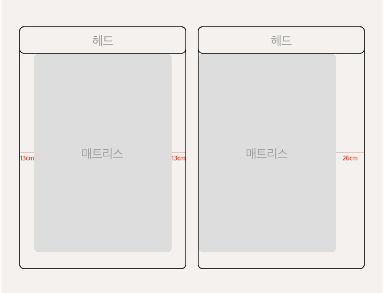 좌우 13cm씩 여유가 있는 구조지만, 매트리스를 한 쪽으로 밀착하면