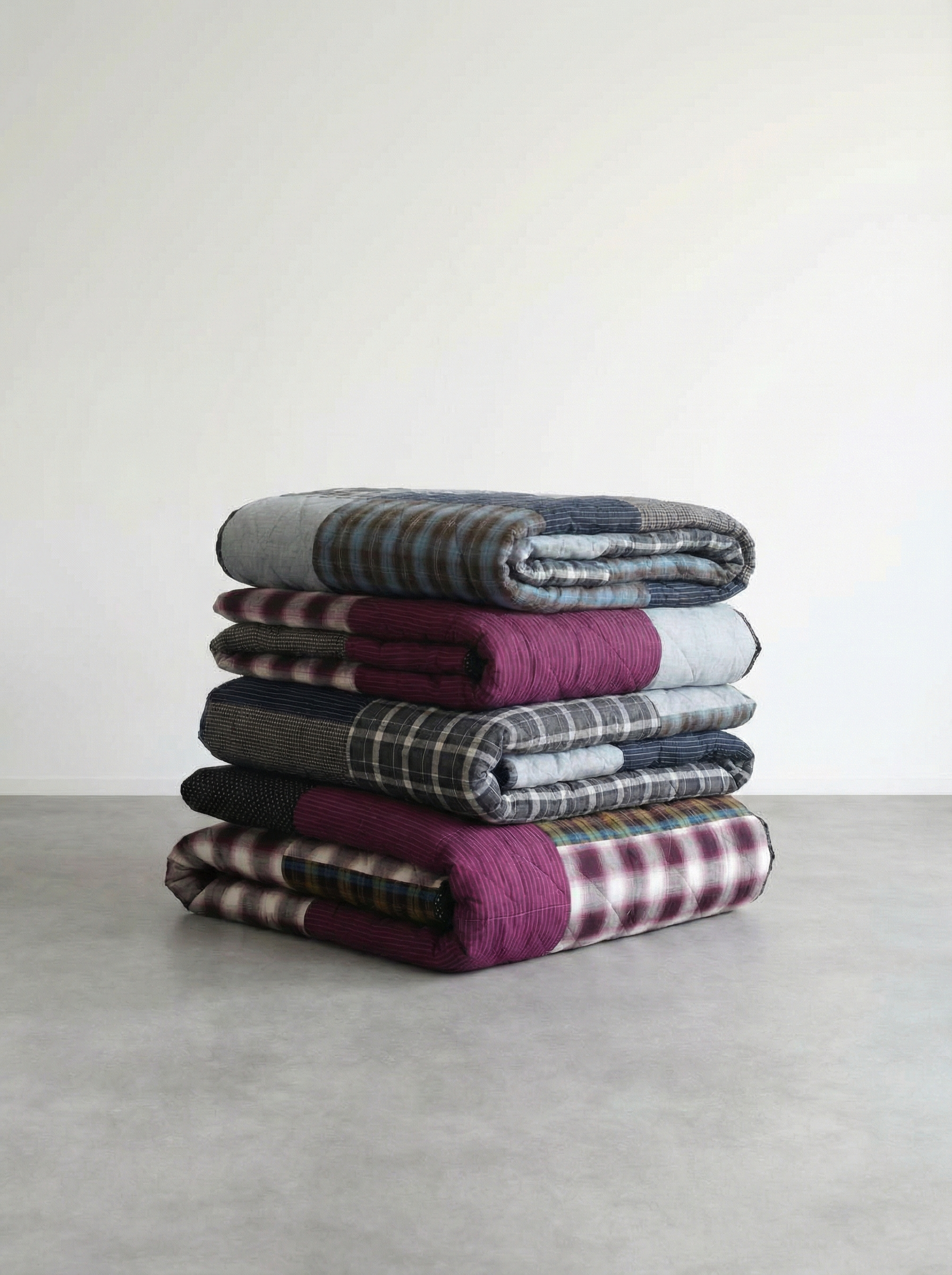 Patchwork: cotton, polyester, rayon, etc.