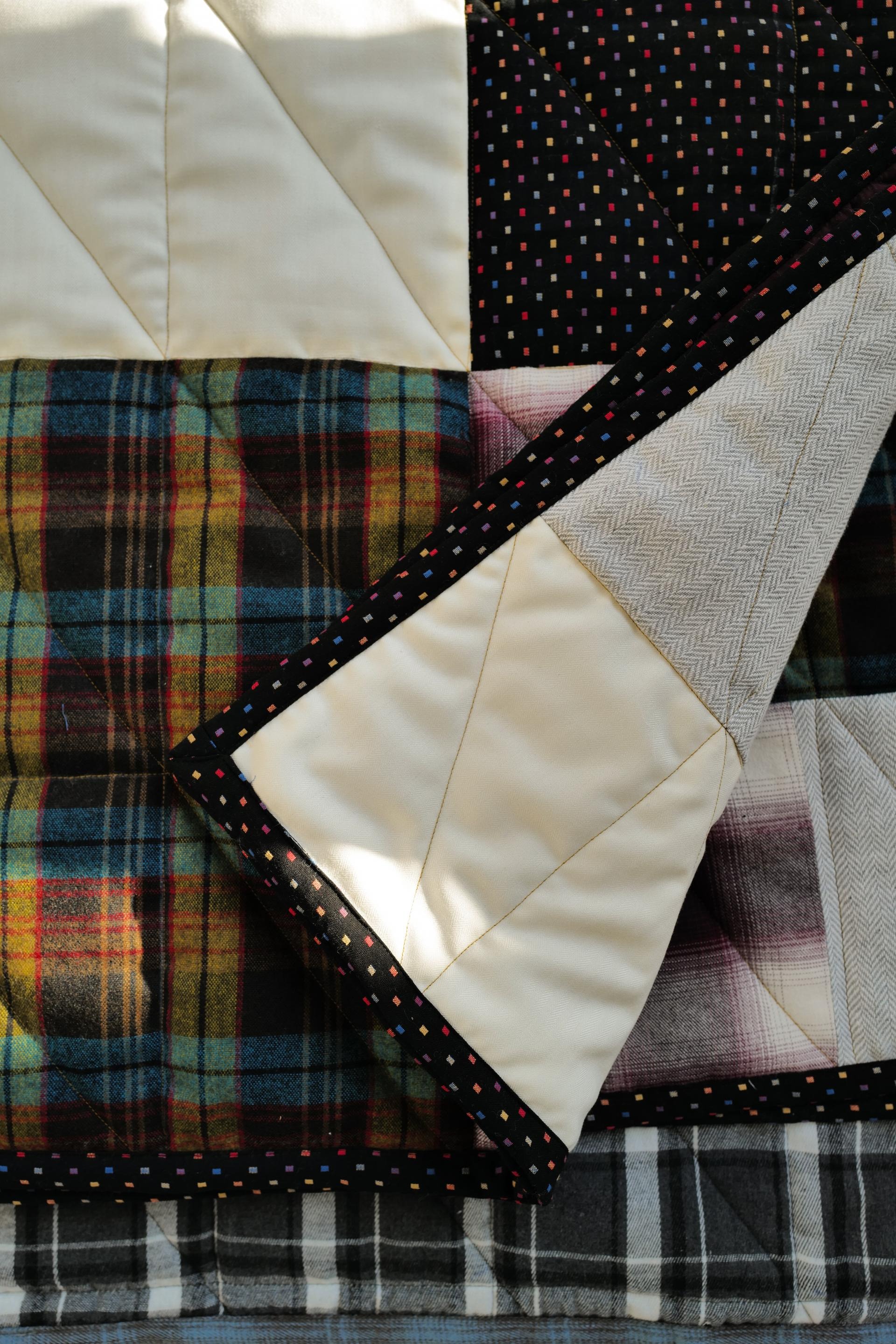 Patchwork: cotton, polyester, rayon, etc.