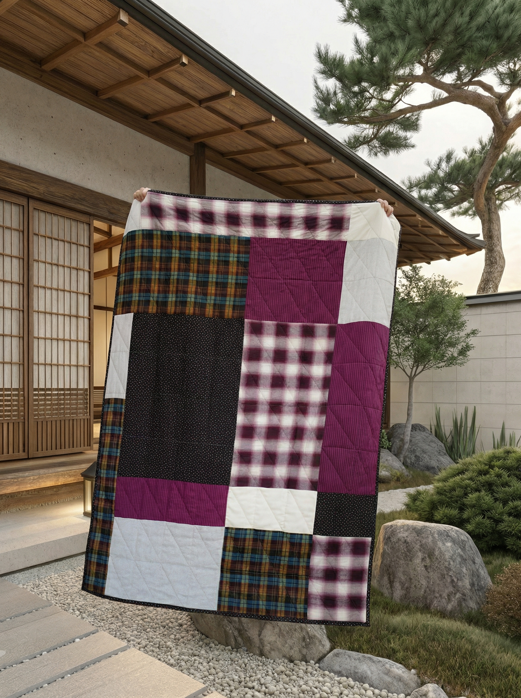 리듬감 있게 배치하여 제작한 패치워크 블랭킷입니다.