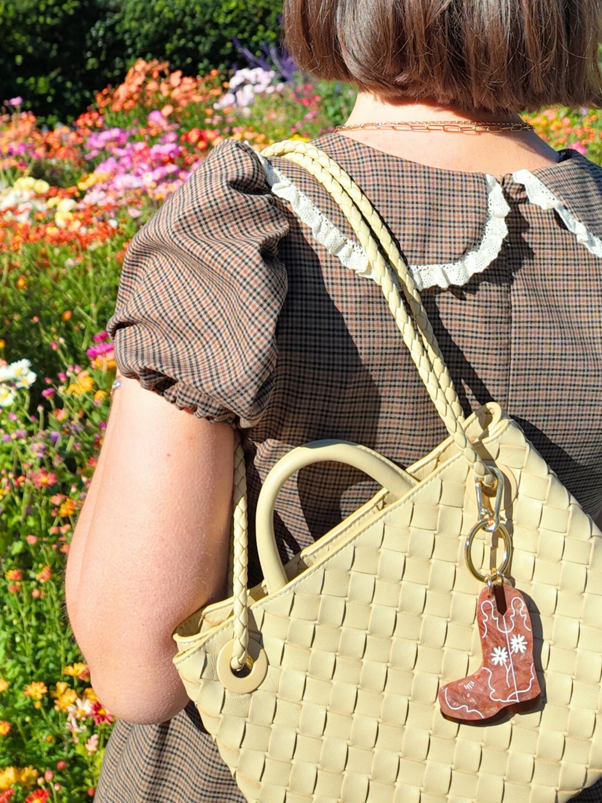 [Hand-Painted Daisy Cowboy Boot Bag Charm + Keychain]