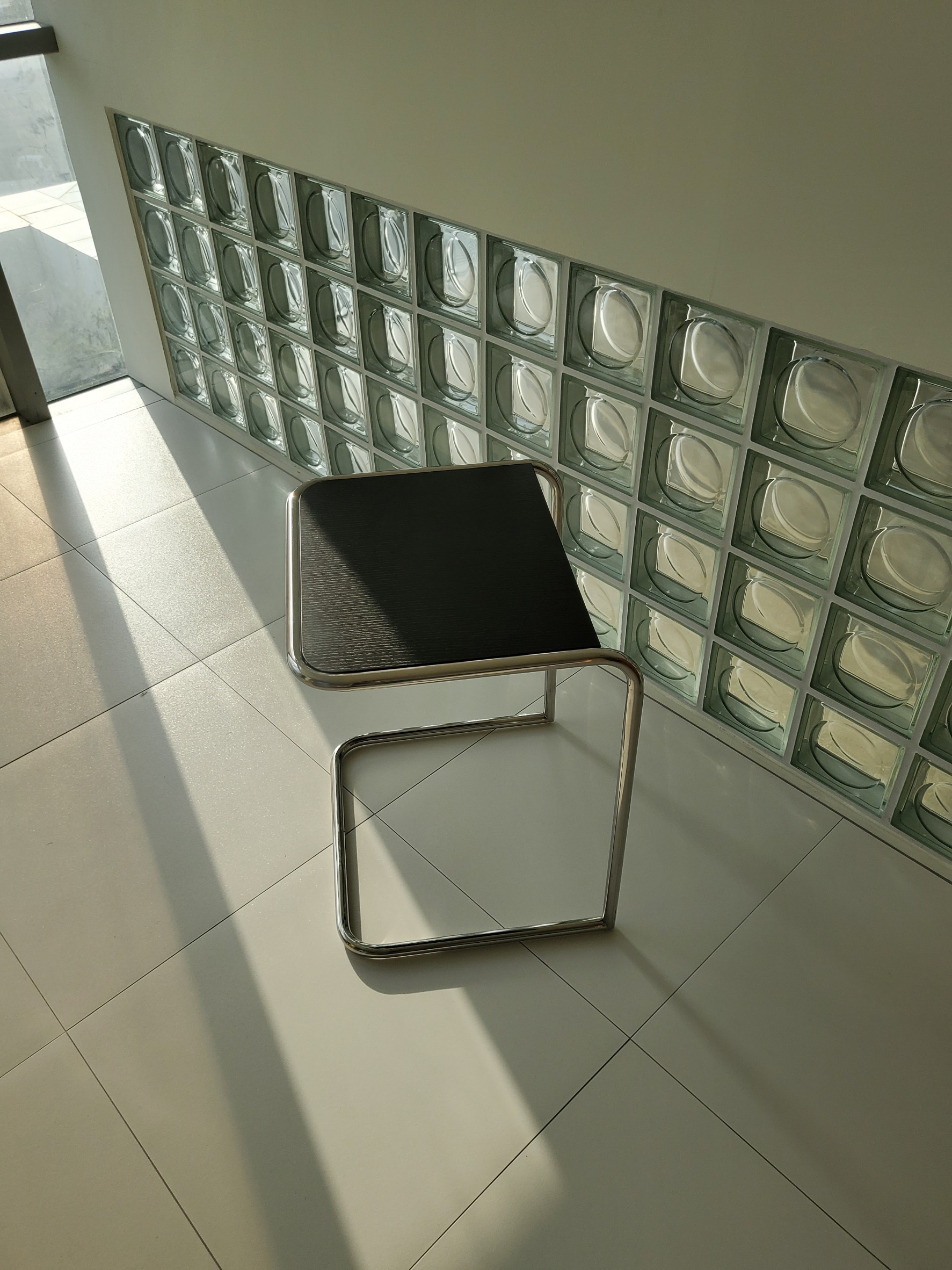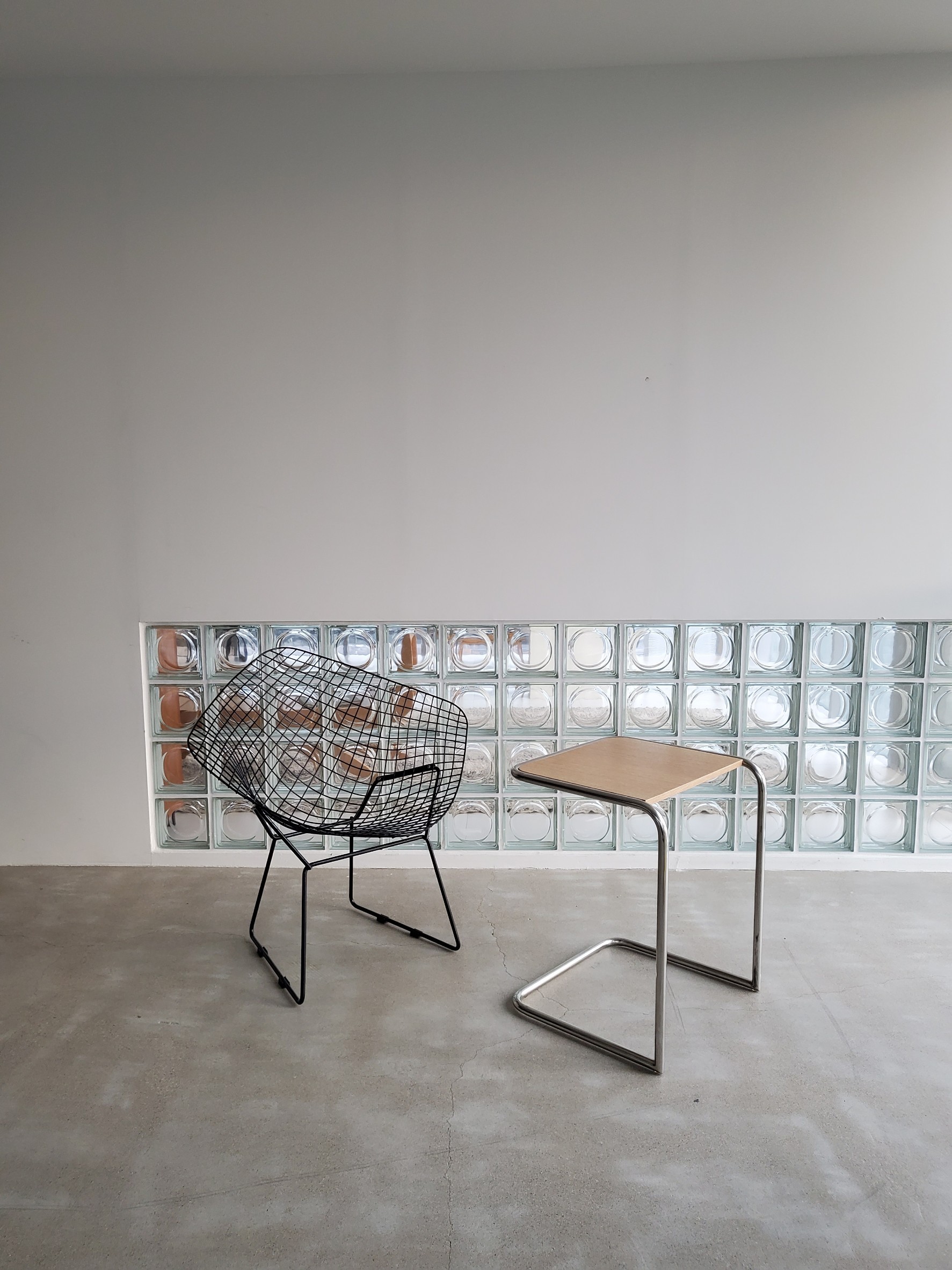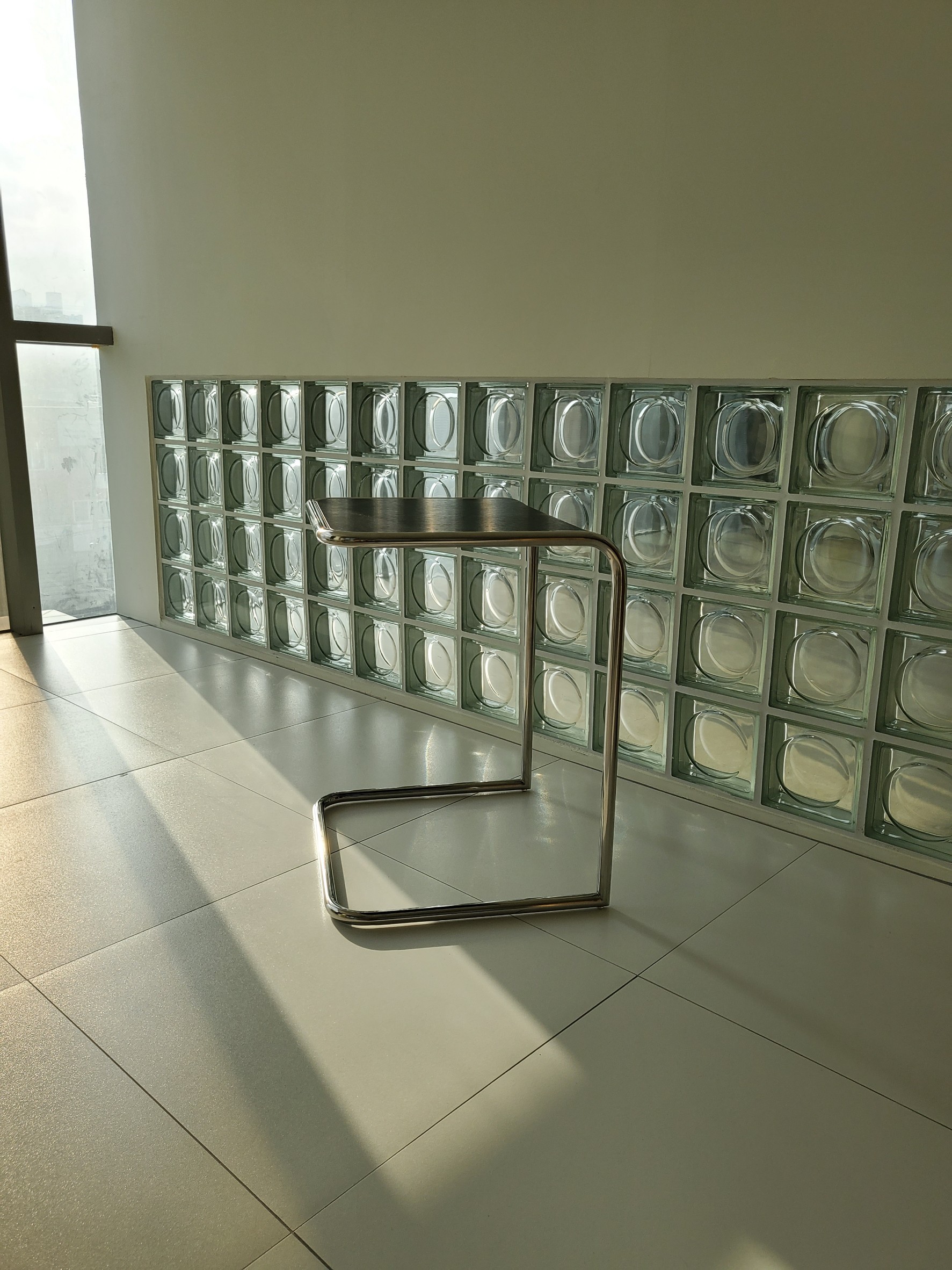 강철관 튜브의 모던함과 컬러링된 우드의 조합은