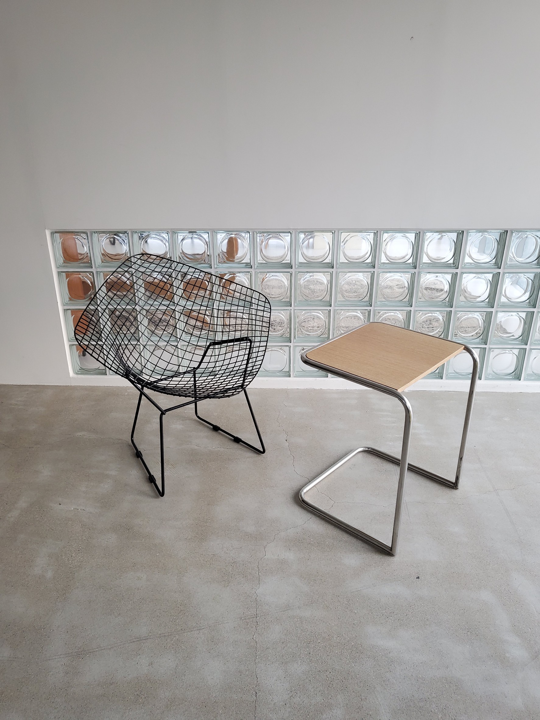 스틸과 우드 소재가 믹스된 사이드 테이블 입니다.