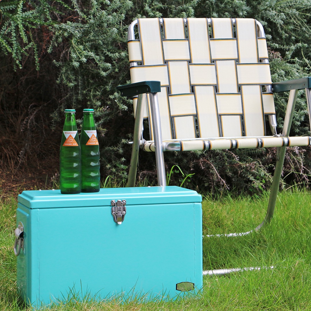 레트로 디자인의 쿨러 박스로 너무 크지 않고, 피크닉이나 BBQ 등 아웃도어 환경에서 편하게 쓰기 좋은 사이즈의 제품 입니다.