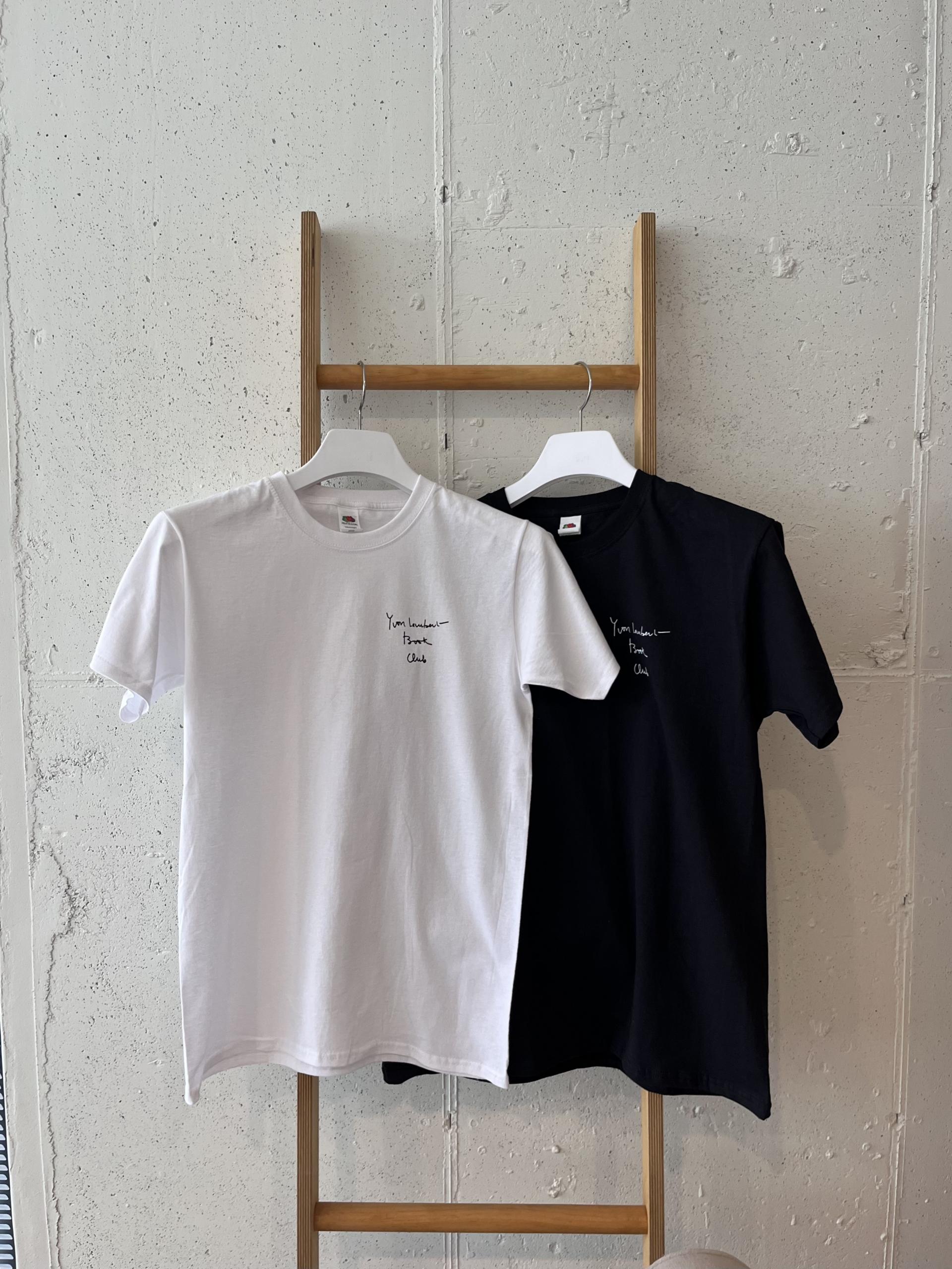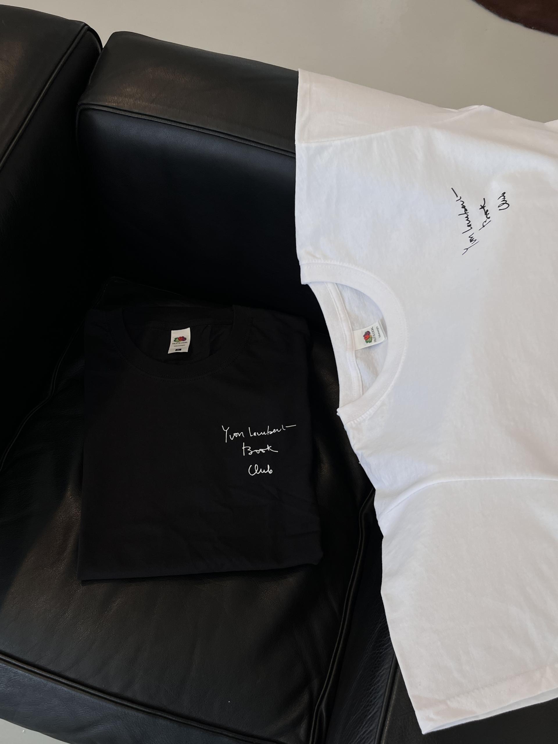 필기체로 쓰여진 'Yvon Lambert Book Club' 문구가 멋진 반팔 T셔츠 입니다.