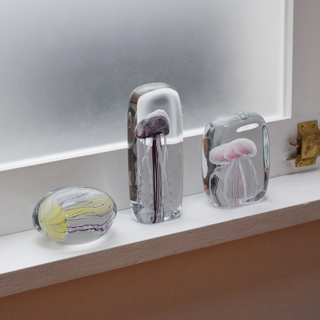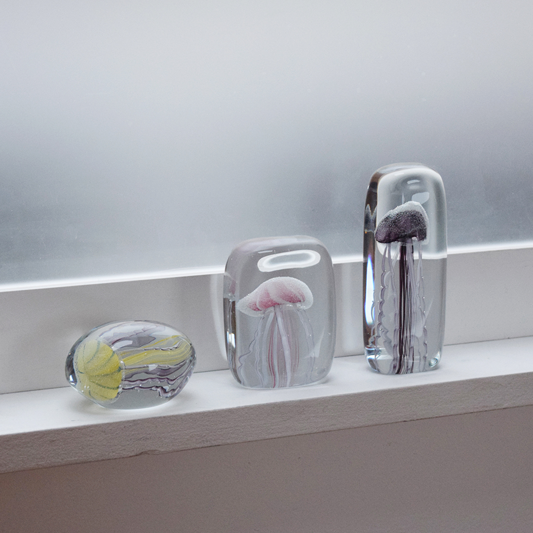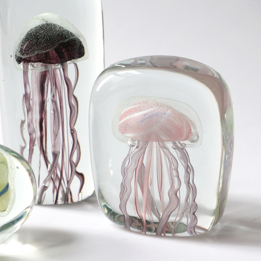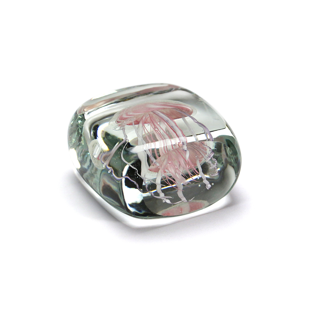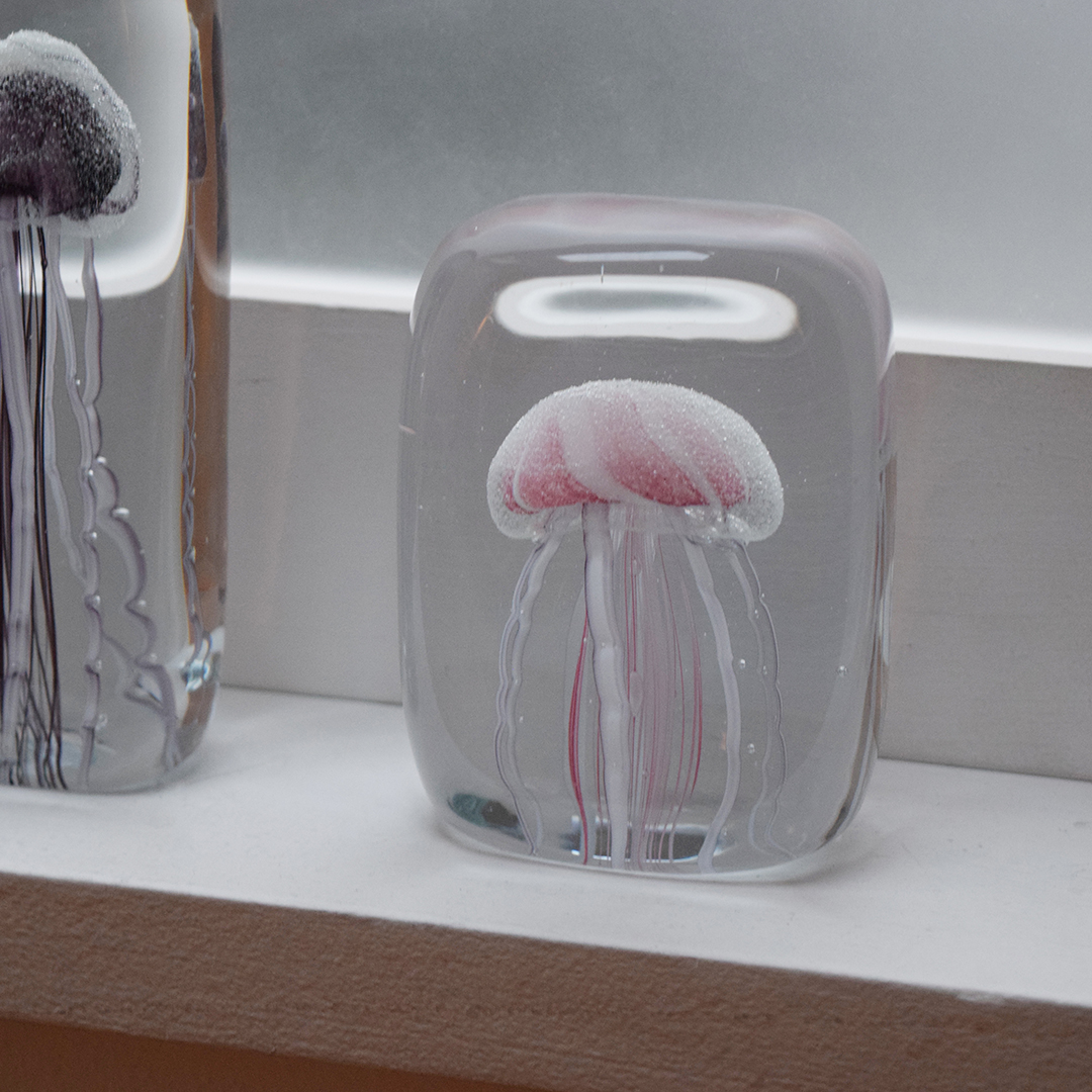 수조안에 해파리가 떠있는 것만 같은 유리 공예 오브제 입니다.